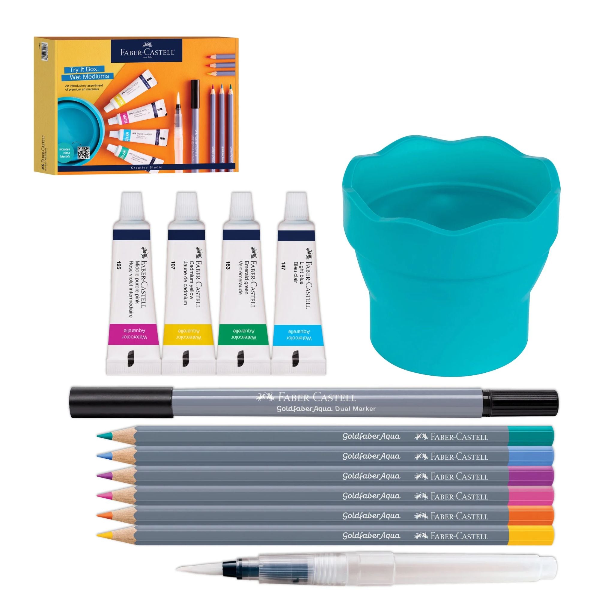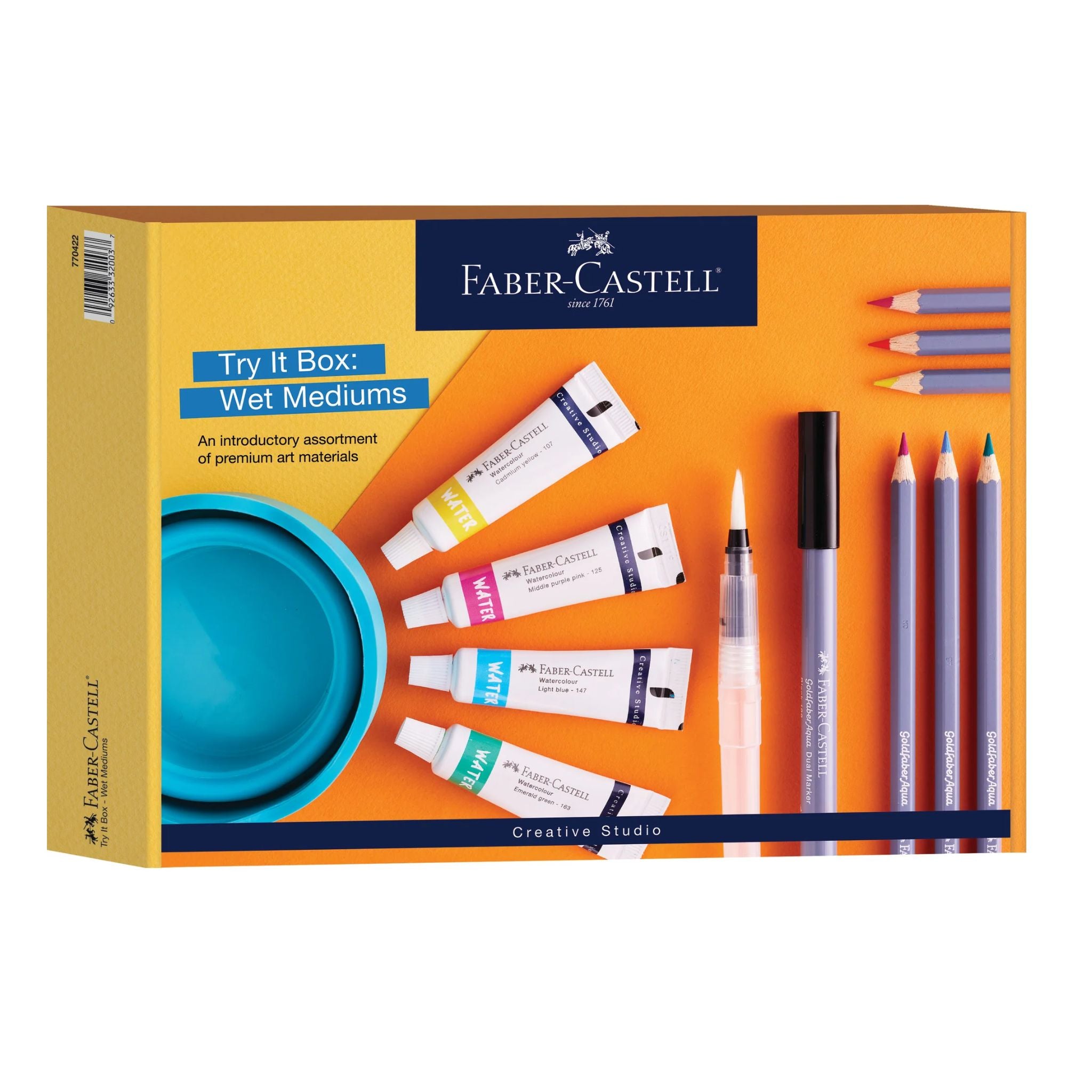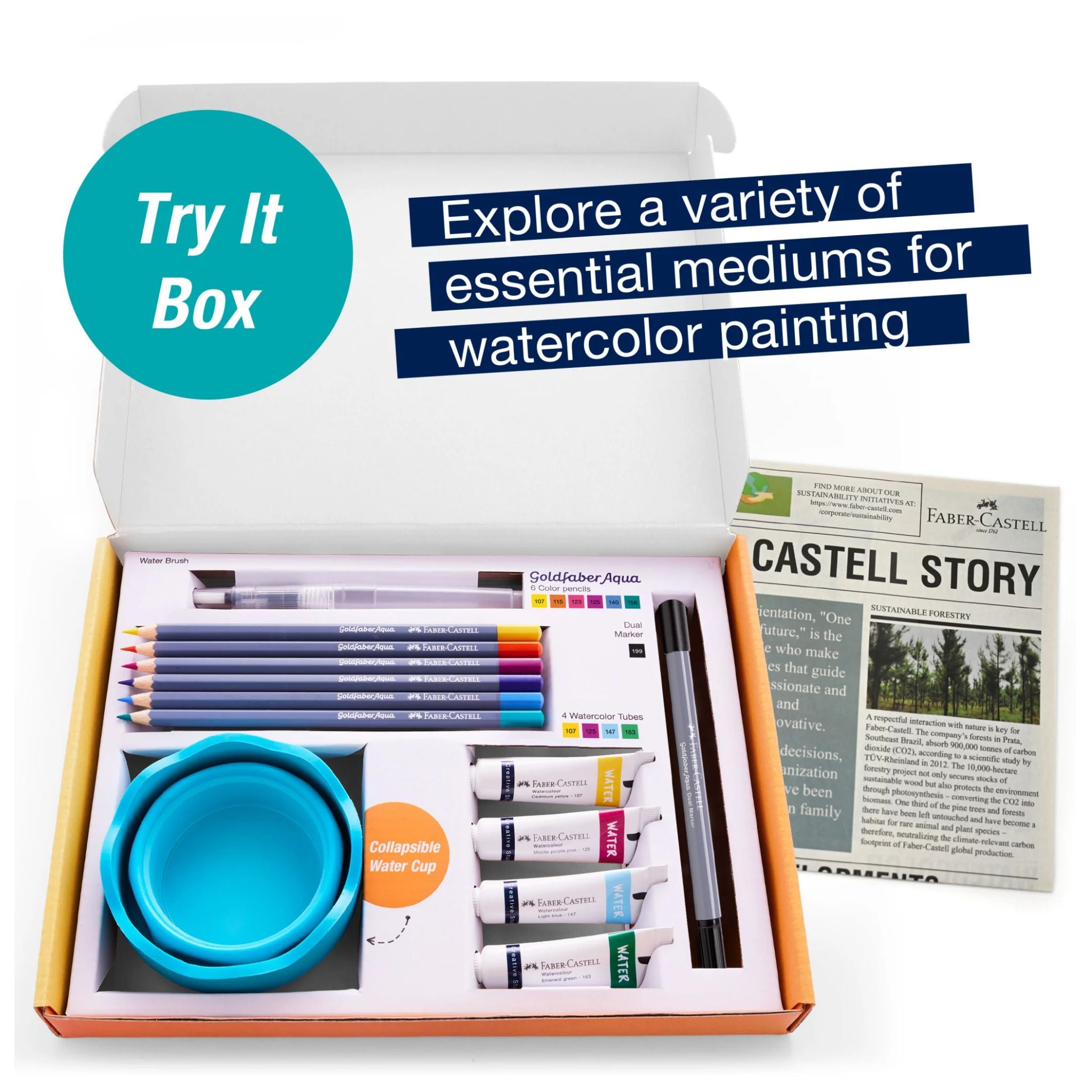 The Creative Studio Try It Box is a curated selection of high-quality art supplies that allows you to experiment with watercolour marker, pencils, paint and more. This sampling set is crafted to spark creativity, offering artists of all levels an opportunity to explore, create and fall in love with the diverse possibilities of wet mediums.