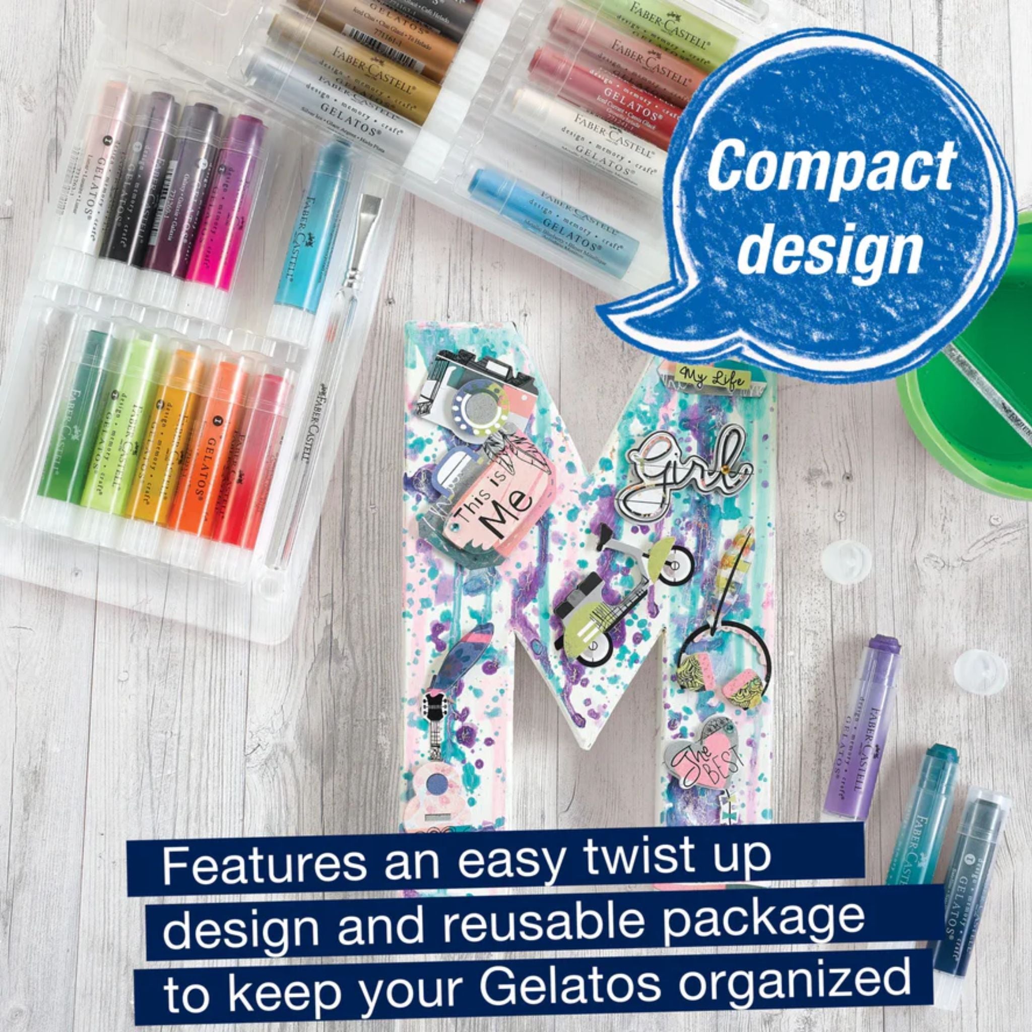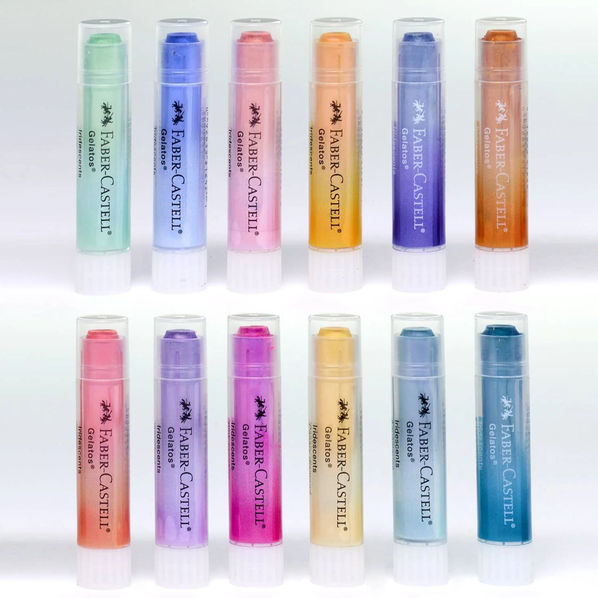 This Gelatos Set is perfect for keeping your favourite colour categories together! It's extremely versatile and works beautifully when used to tint gesso, whipped Spackle and other mediums. The Iridescents set contains 12 shimmery tints that are great for backgrounds and accents. Great for coloured and black paper. Gelatos are odorless and acid-free. The clear storage case makes the set easy to transport and organize.
