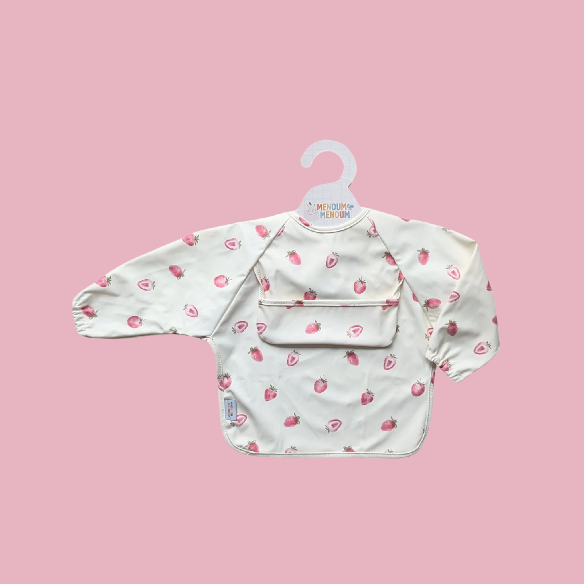 This Long Sleeves Bib has a special food catcher pouch that folds up. It's practical and will be appreciated for meal times!  Unlike other bibs, which have a pocket at the bottom of the apron, the pocket of this bib is placed at the height of the torso to receive food residue properly. The pouch folds up when washing for easier cleaning.