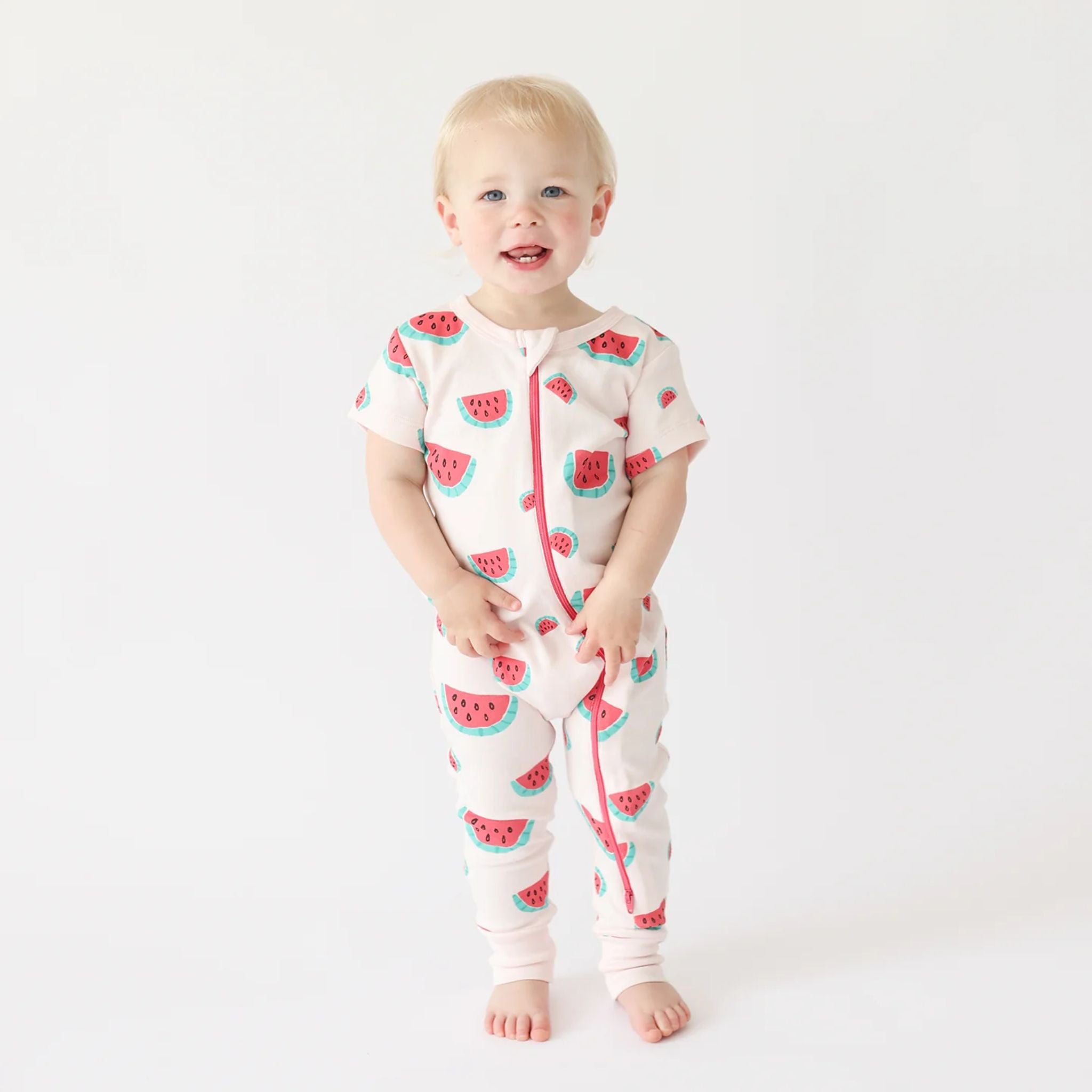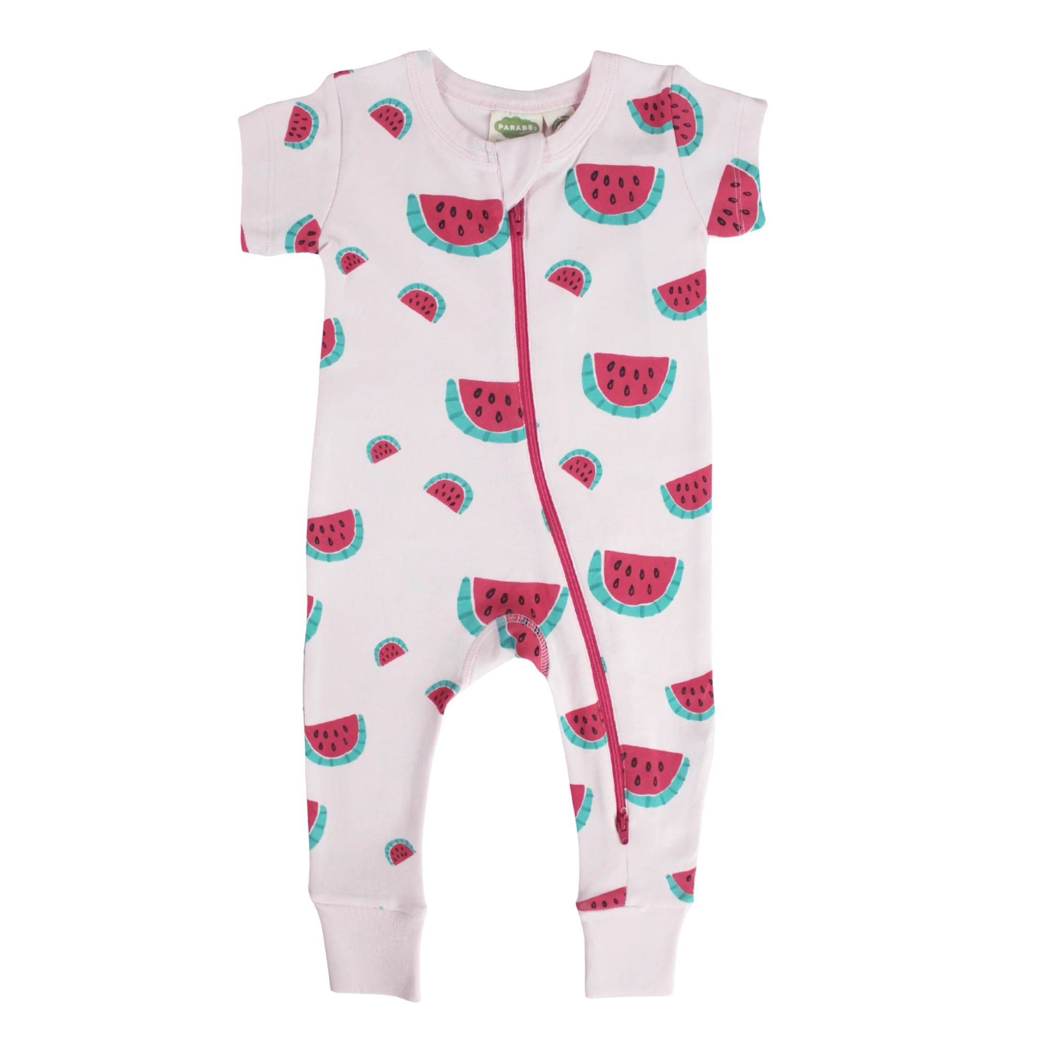 Parade Organic Essentials Short Sleeve '2-Way' Zip Romper - Watermelon