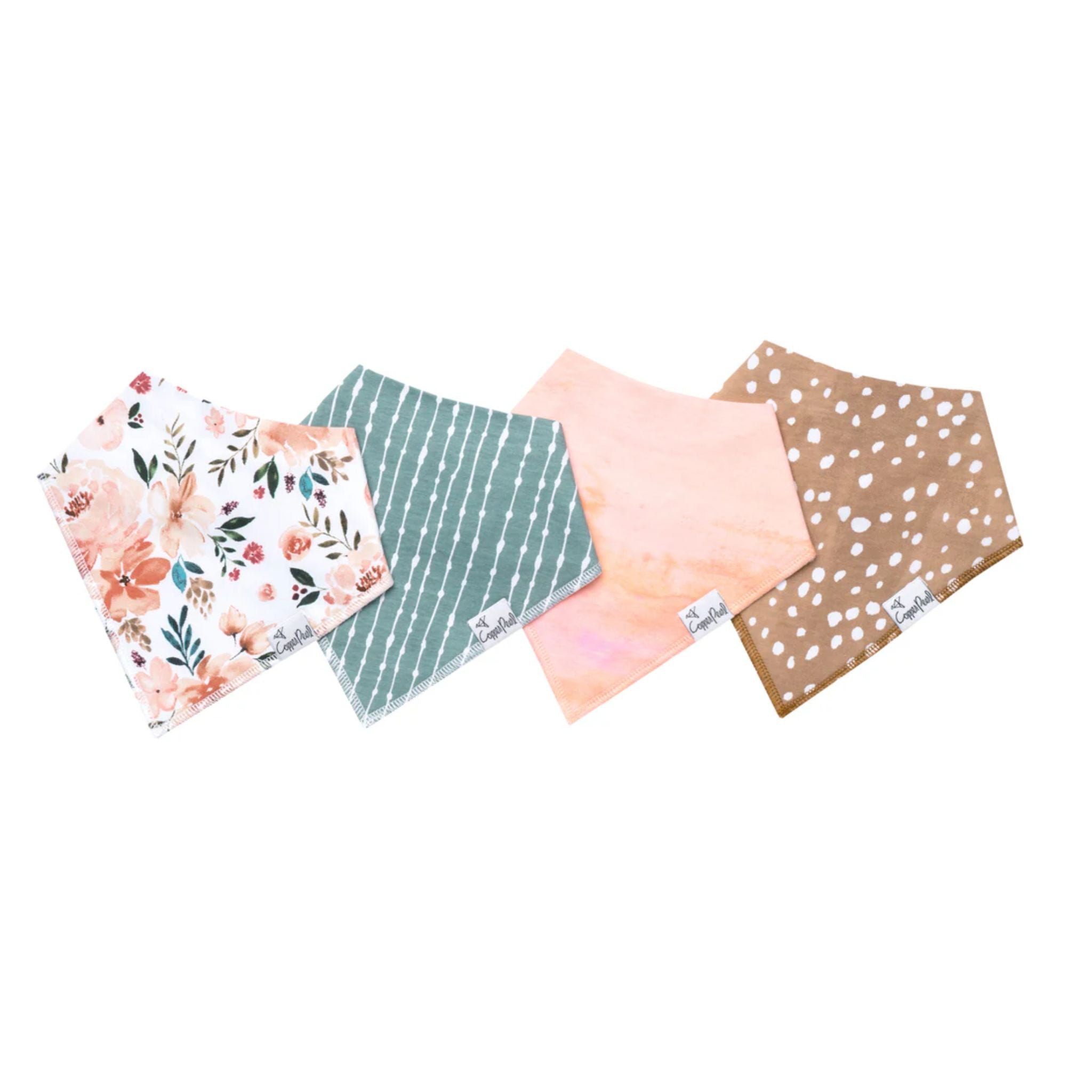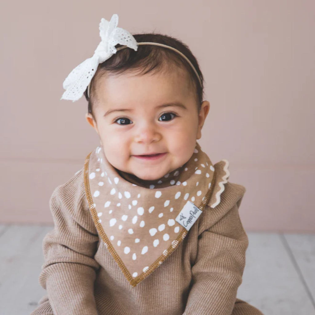 These stylish drool bibs are made of 100% absorbent, knit cotton on the front and 100% super soft polyester fleece on the back.