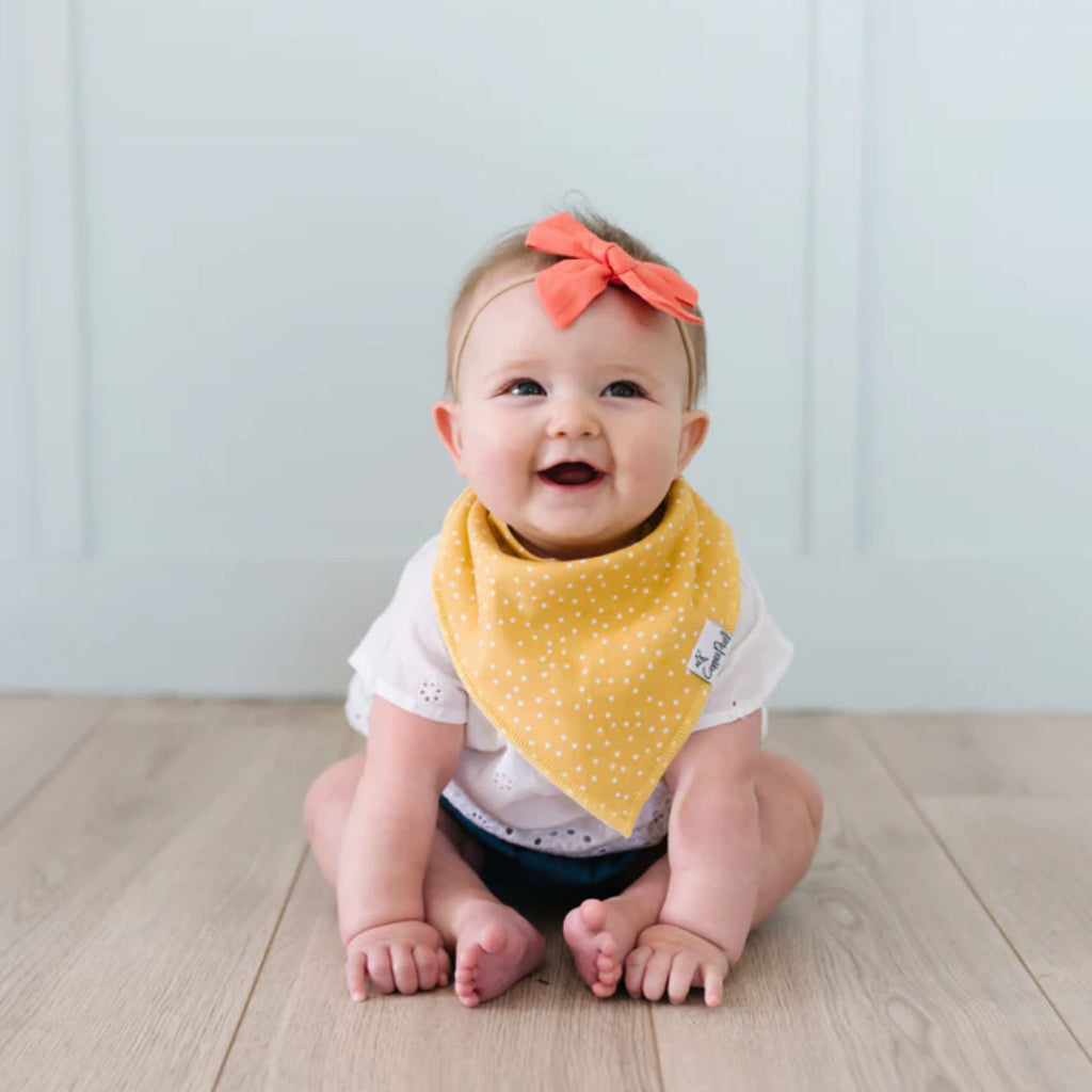 Each baby bandana bib comes with 2 nickel-free snaps that allow each bib to be adjustable in size to fit newborns and toddlers. The snaps are secure, making it difficult for infants and toddlers to unfasten but are easy for parents to snap on and off.
