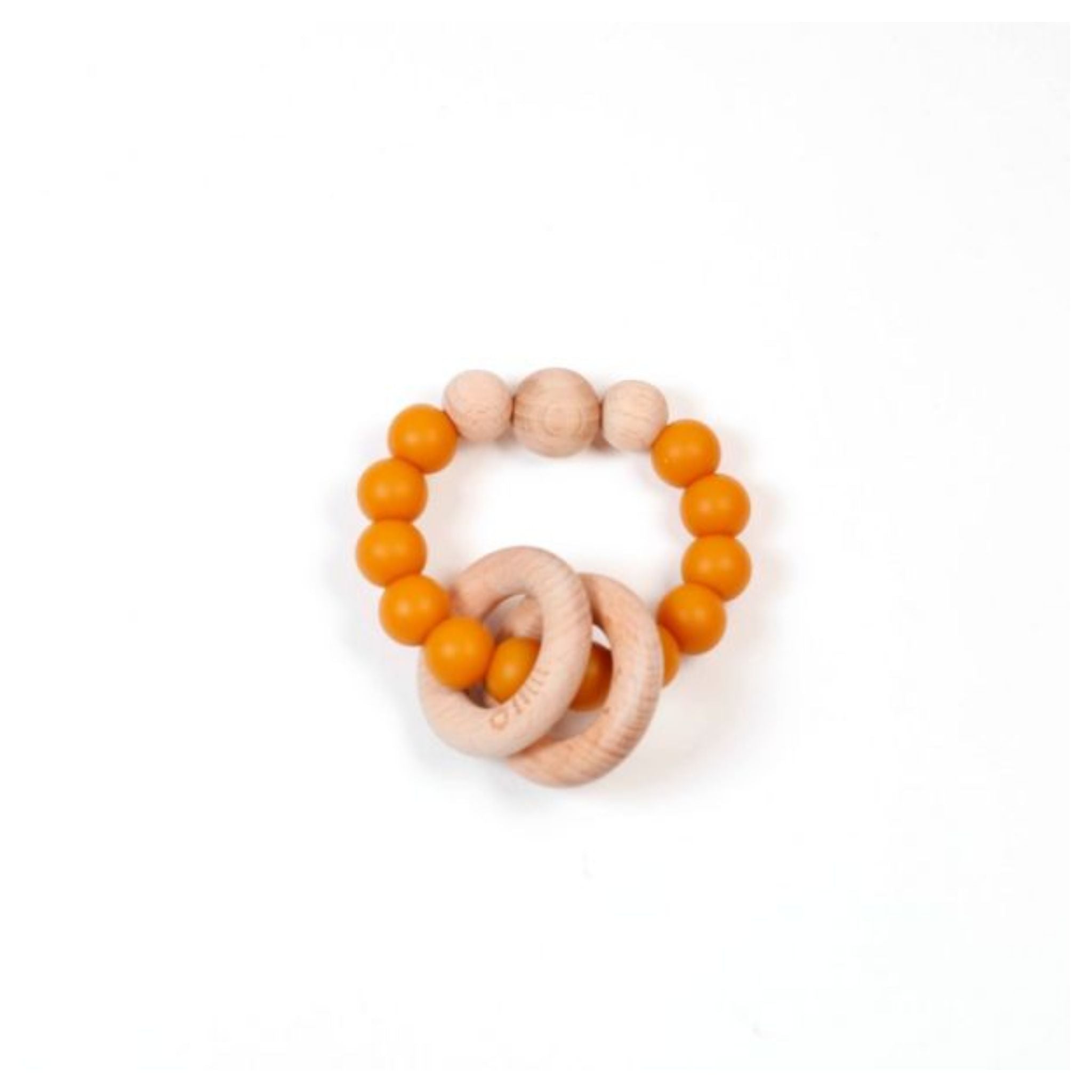 Babies will appreciate the combination of wood and silicone textures that will help them to relieve teething pain and develop fine motor skills. Easy to hold by the small fingers of your little one. Made of beech wood and food-grade silicone free of BPA, phthalates, cadmium and lead. Wash by hand with damp cloth and mild soap. Must be dried immediately.