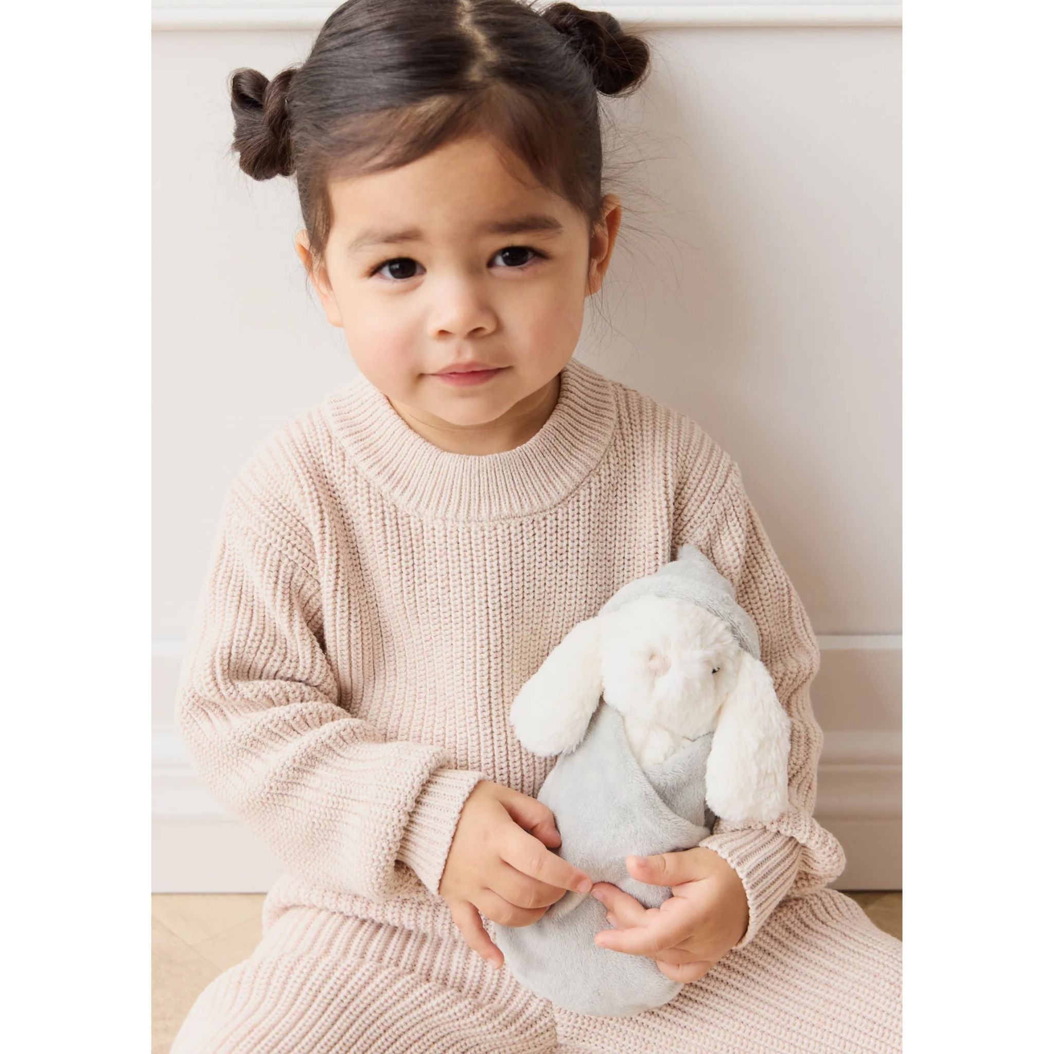 With its removable grey sleeping bag, Willow the plush bunny will accompany your child on their daily adventures, whether they're awake or asleep. Its ultra-soft fur and delicate colors make it an ideal gift for little ones seeking tenderness and comfort. The sleeping bag is removable.