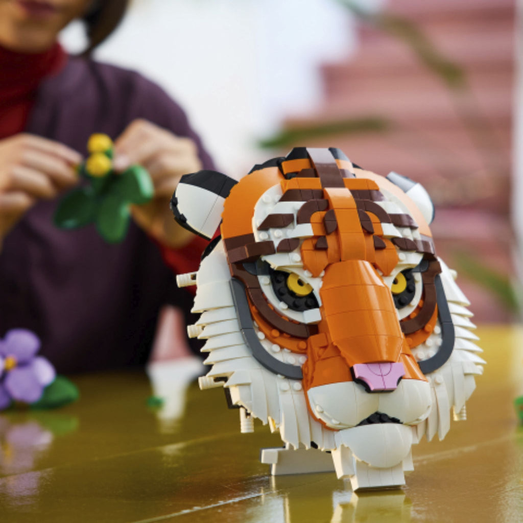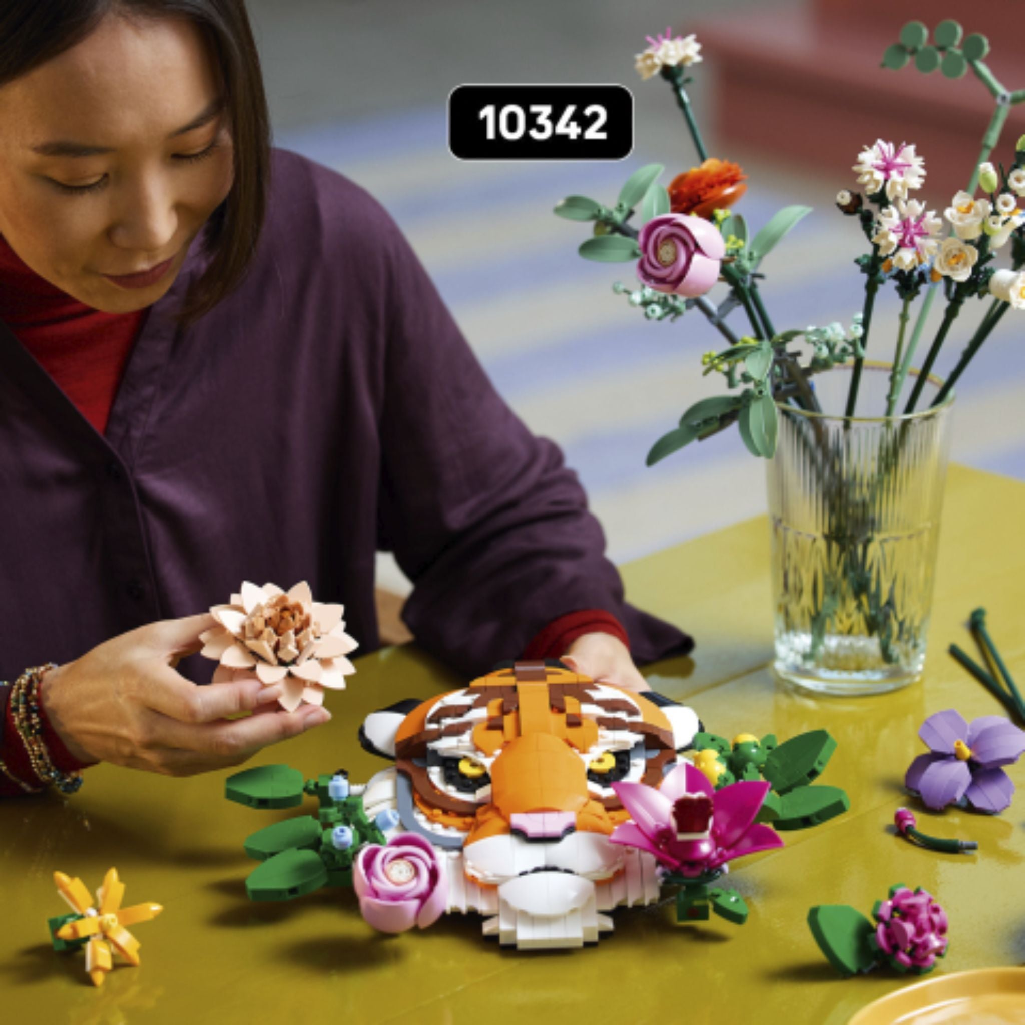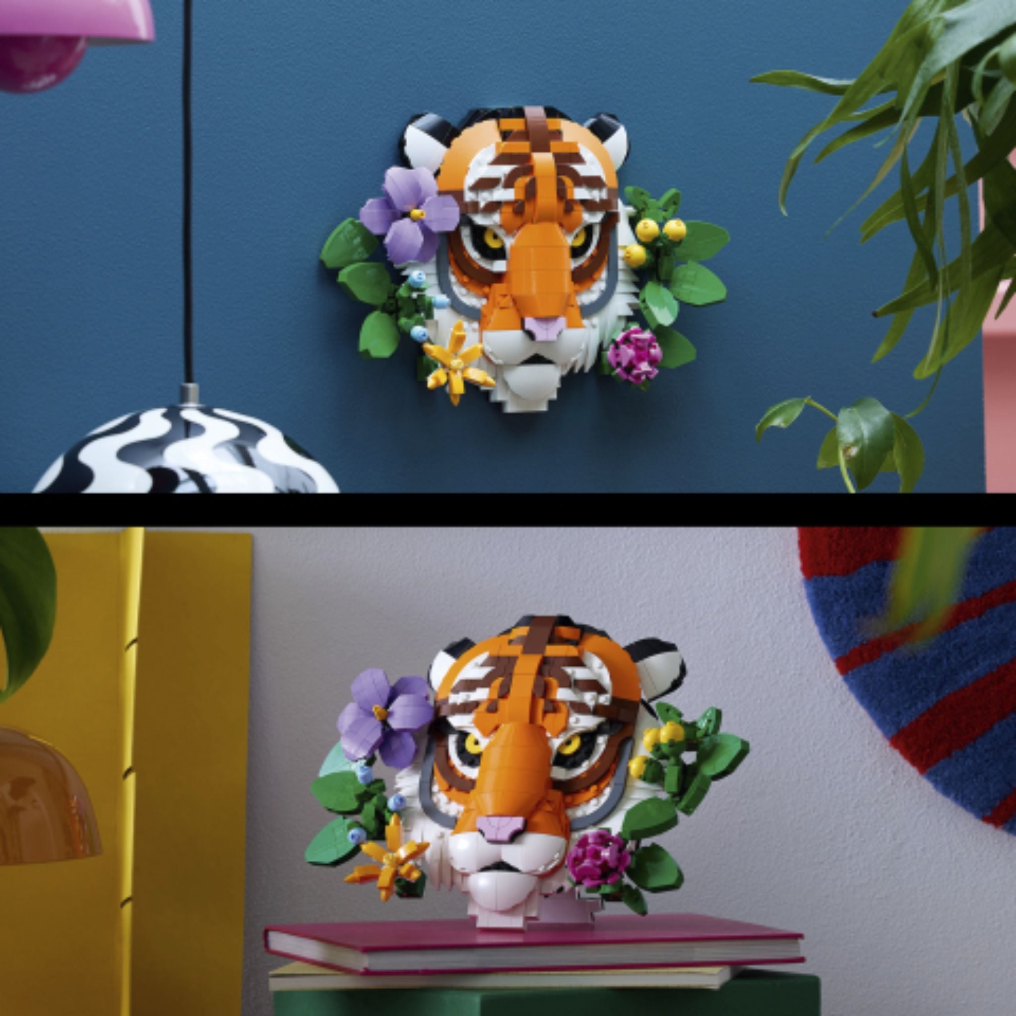This wildlife decor depicts a beautiful tiger peeking through a collection of decorative flowers and plants. You can hang it on your wall or use its built-in stand to display on a table or shelf. The flowers are all customizable and can be moved into different positions, or you can add other brick-built flowers from some of the sets (sold separately) in the LEGO Botanicals collection.