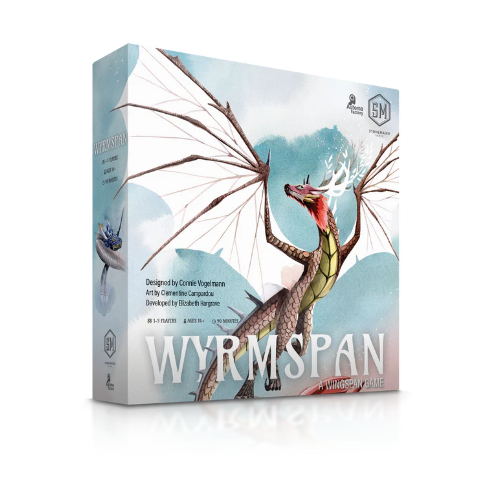 Wyrmspan is inspired by the mechanisms of Wingspan, though its unique elements make Wyrmspan a standalone game (not compatible with Wingspan).