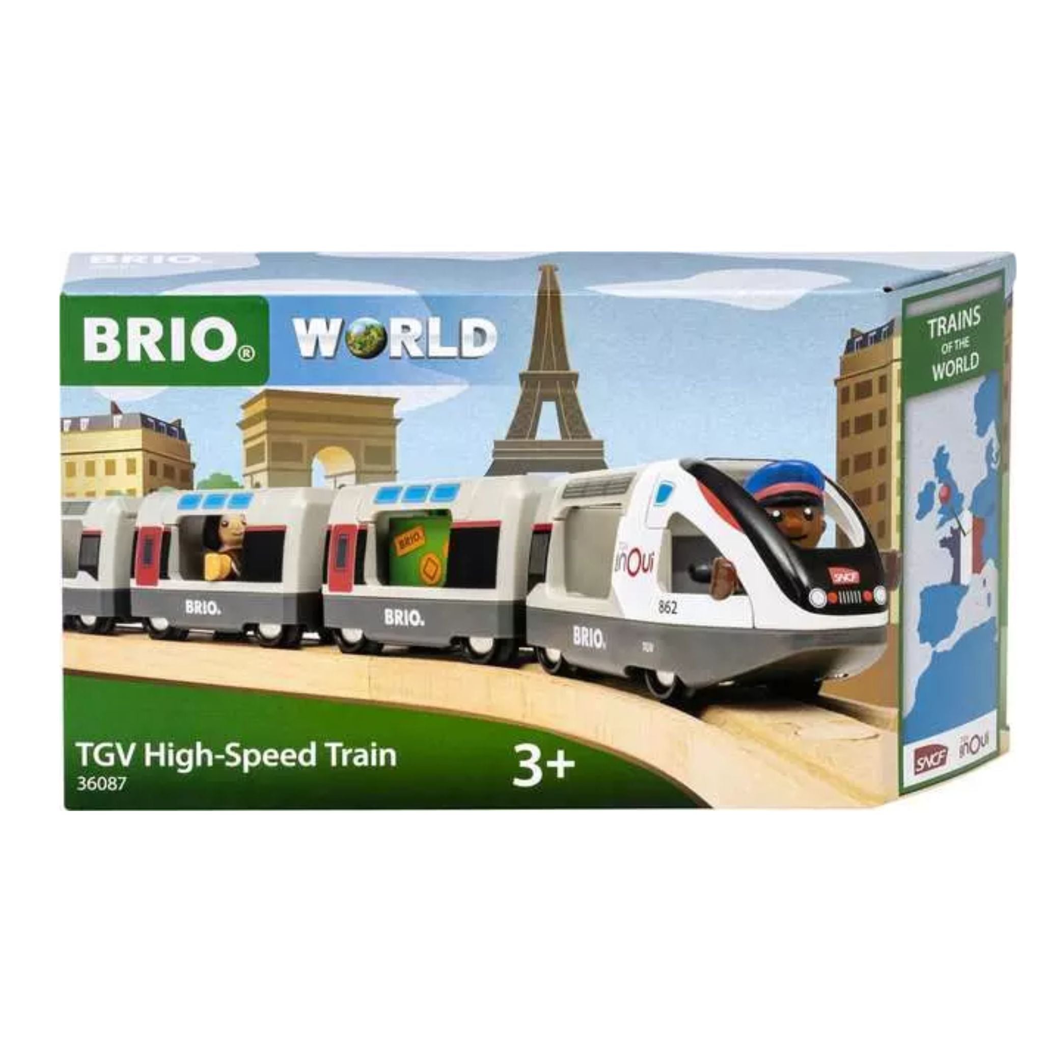Travel from romantic Paris to the French Riviera on board the TGV High-Speed Train – part of the Trains of the World series. This high-speed train comes with an accurate TGV design and is the longest train in BRIO World with space for 6 characters. The TGV railway covers much of France but also connects to many neighbouring countries such as Italy, Spain and Germany. Explore iconic railway routes and famous trains from all around the world with the Trains of World series.