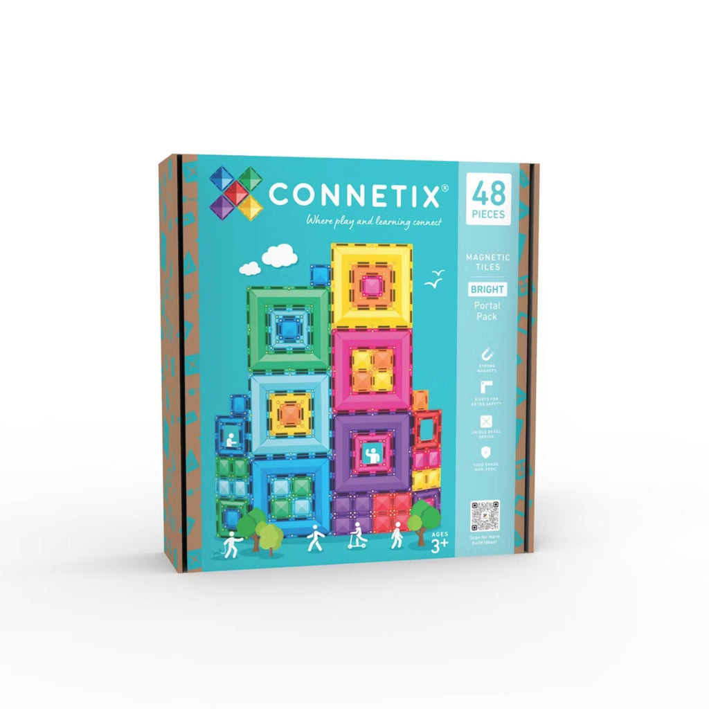Featuring eight bright colours, this pack includes three different sized squares designed to neatly nest together to take open-ended play and STEAM learning to a whole new level. The large and standard portal tiles – with their unique open-frame design, unlock innovative ways to engineer and build with multiple magnetic connection points on the inner and outer edges; while the mini-squares showcase the CONNETIX Smart-Spin technology, allowing magnets to rotate up to 360 degrees within the tile to build in new directions and discover exciting construction possibilities.