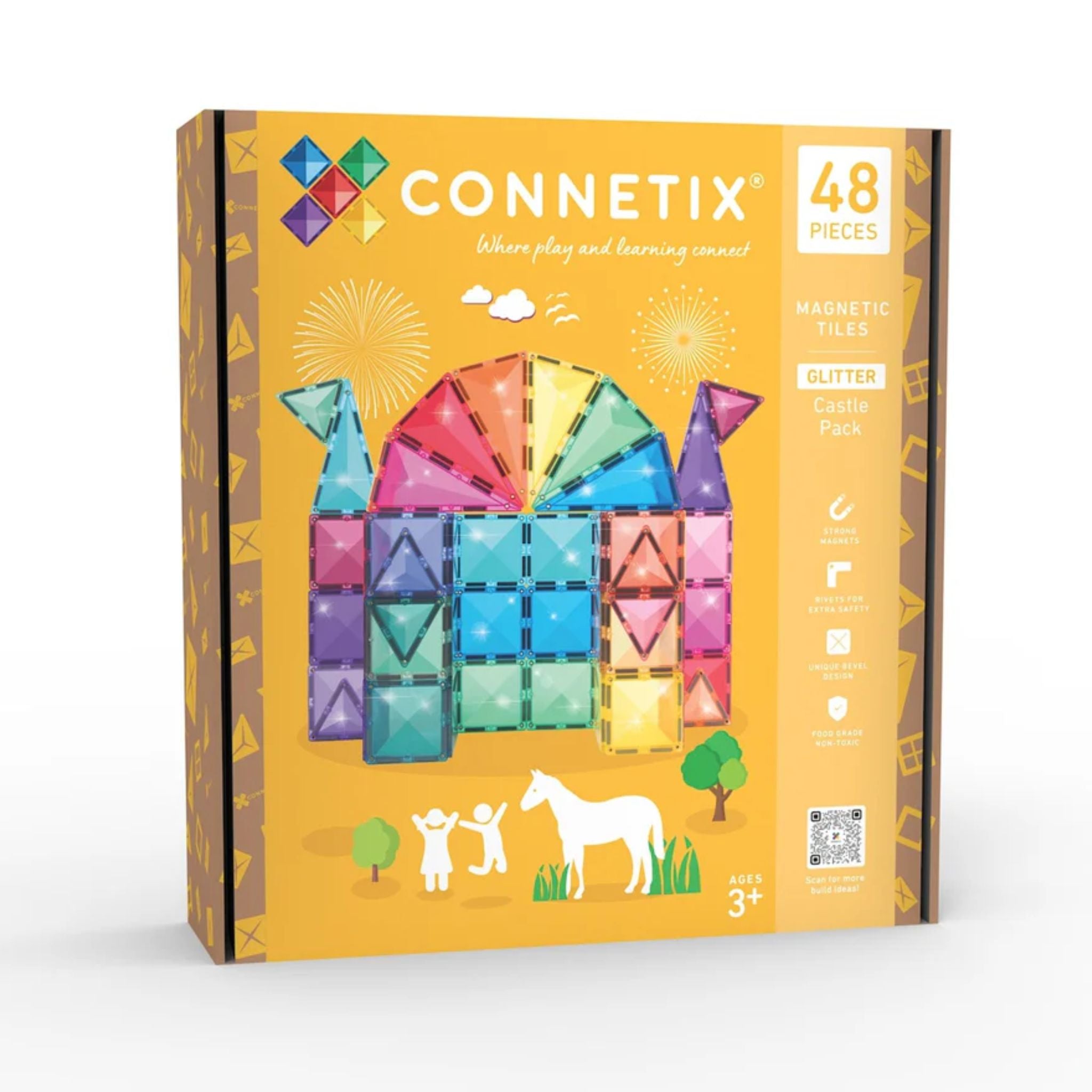 Designed for big imaginations and fairytale explorers, our stunning glitter tiles in signature pastel and vibrant rainbow colours add a touch of magic to every build. Featuring squares, plus a mix of isosceles and equilateral triangles all bursting with multi-coloured sparkles, this open-ended pack is perfect for building shimmering castles, towers, bridges, animals and so much more!