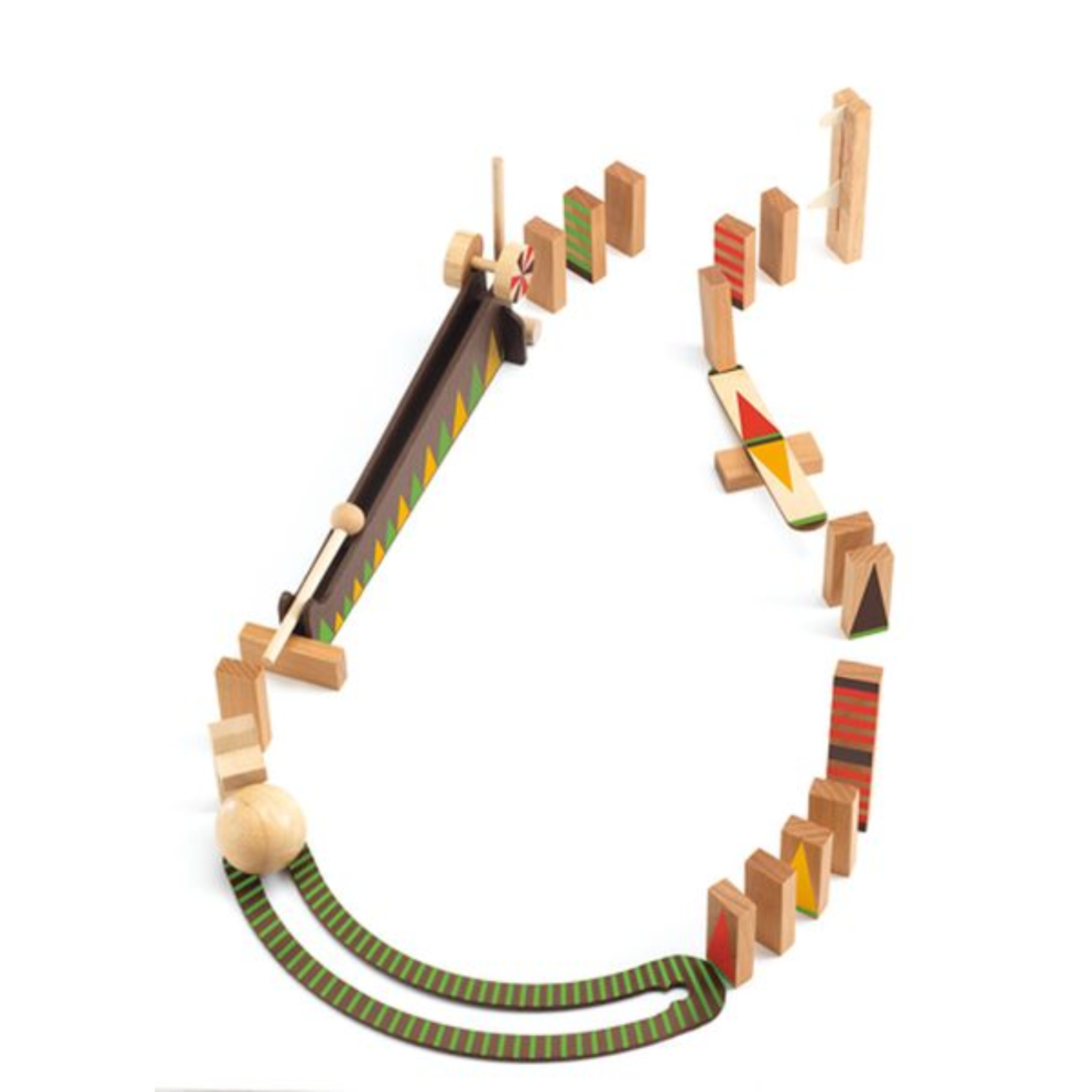 A great introduction toy to learn STEM concepts such as gravity, force and momentum, and how to create a chain reaction. This 27 piece set with wooden dominoes, ball and musical components will inspire creativity while building tenacity, problem solving and critical thinking. Combine Zig & Go sets from the full range and see how big of a circuit you can create!