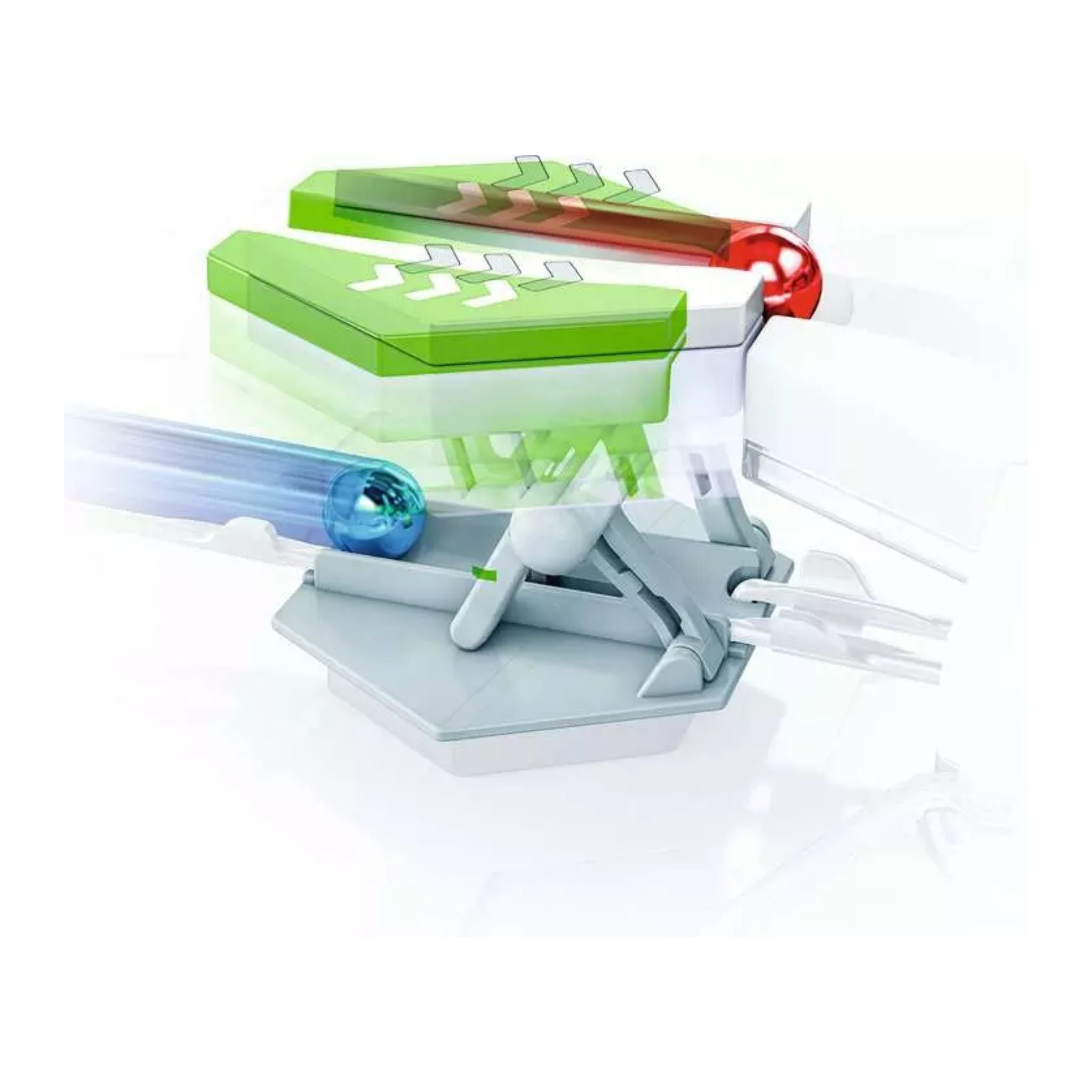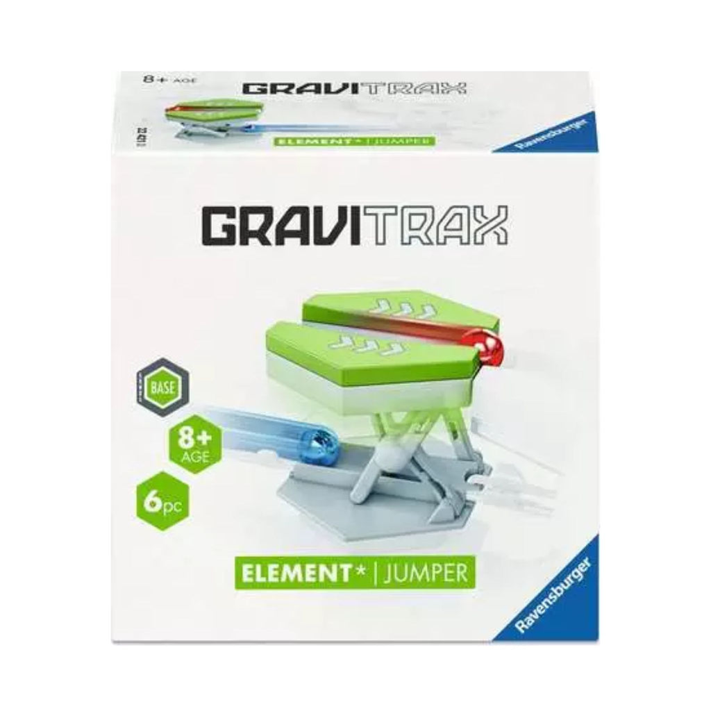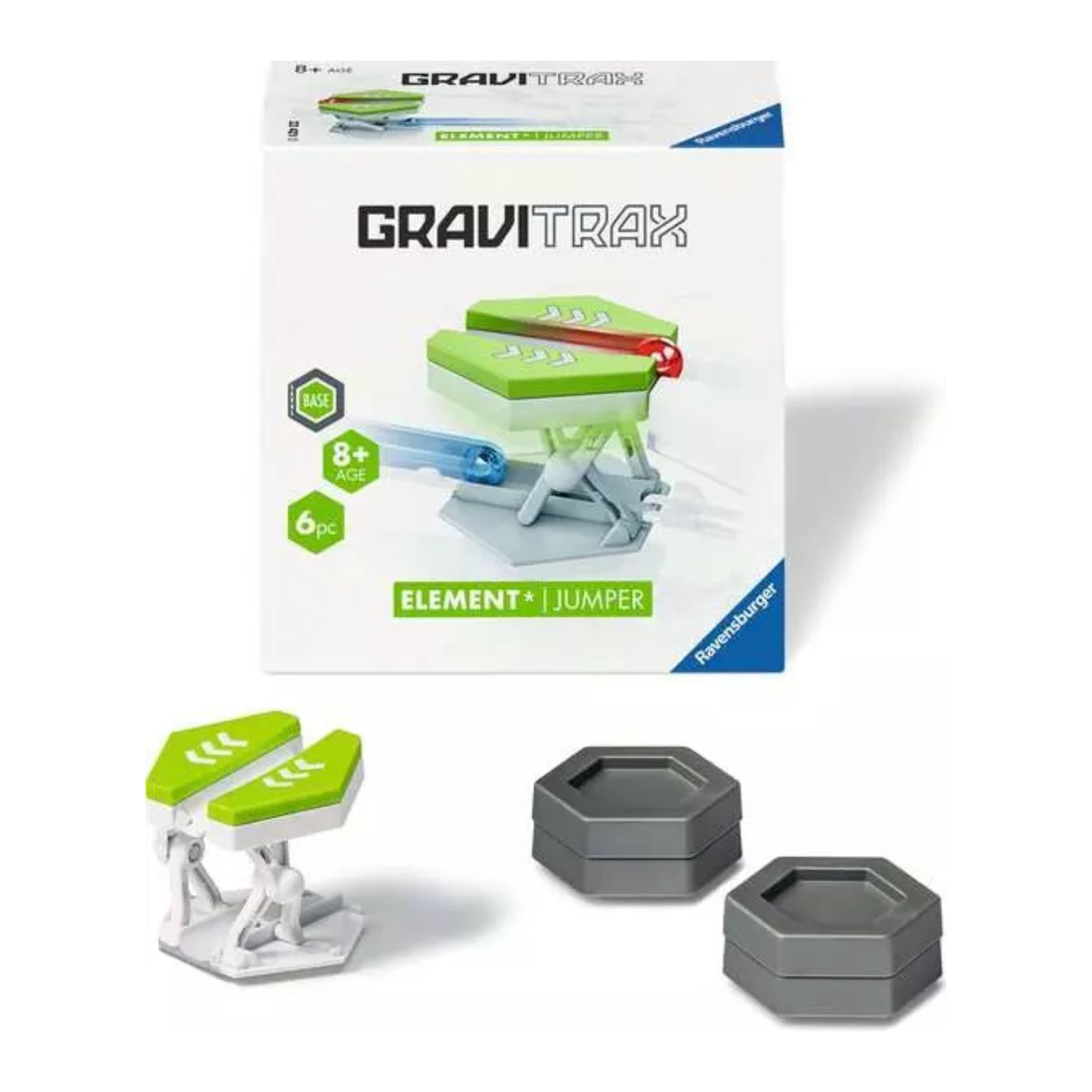 The GraviTrax Jumper element lifts balls to new levels and creates new paths. In this way, height differences in the track can be overcome spectacularly. When a ball rolls into the jumper, it is spectacularly transported upwards and rolls on to a higher level. At the same time, a passage tunnel is created for the next balls. Combined with any GraviTrax starter set, the jumper element brings a whole new level of energy to the ball track.