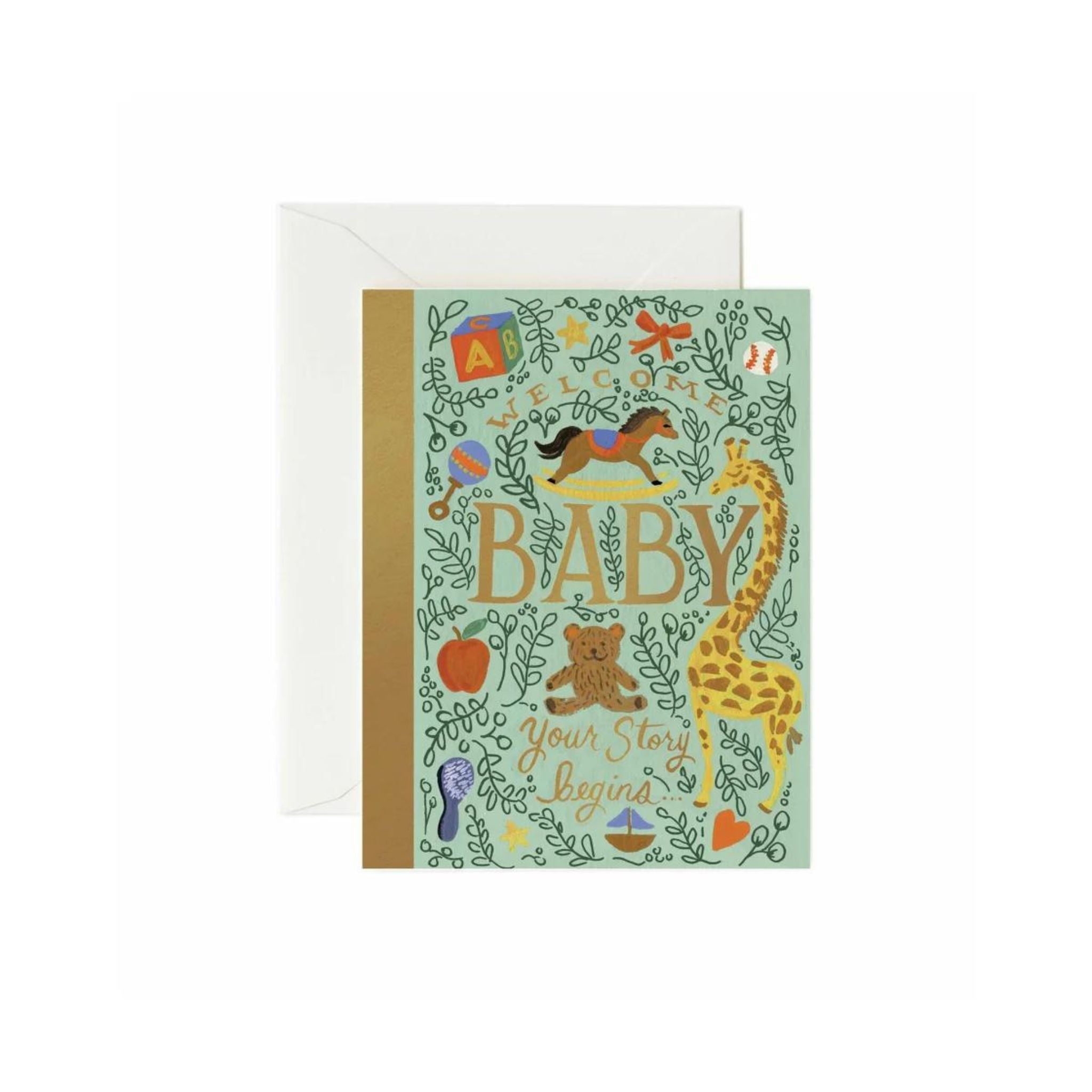 Blank inside, comes with an envelope.  Size:  4.25 x 5.5 in