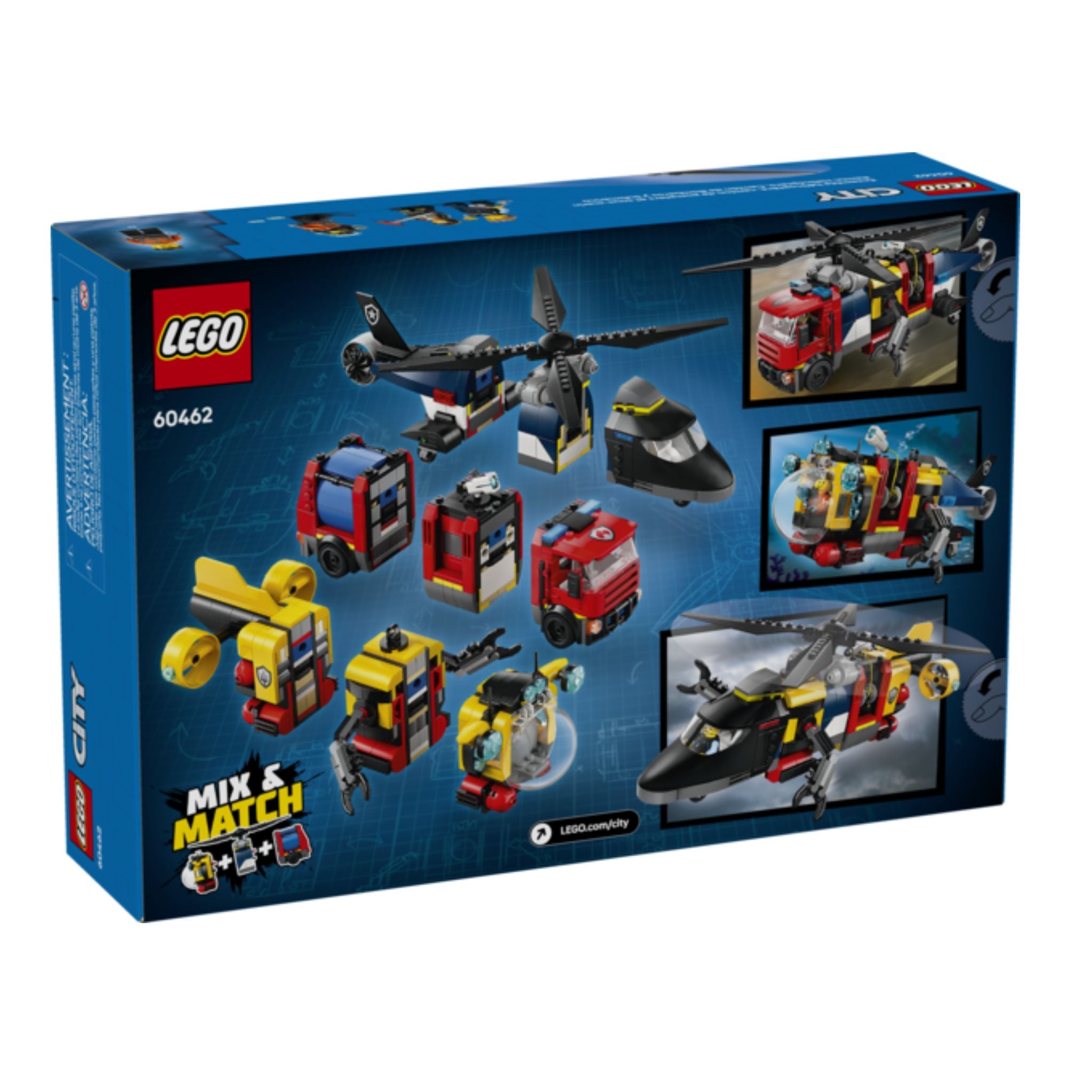 This helicopter, fire truck and submarine toy playset includes a printed building guide and 3D instructions in the LEGO Builder app – a digital building companion with intuitive zoom and rotate tools that enable kids to visualize models from all angles as they build.