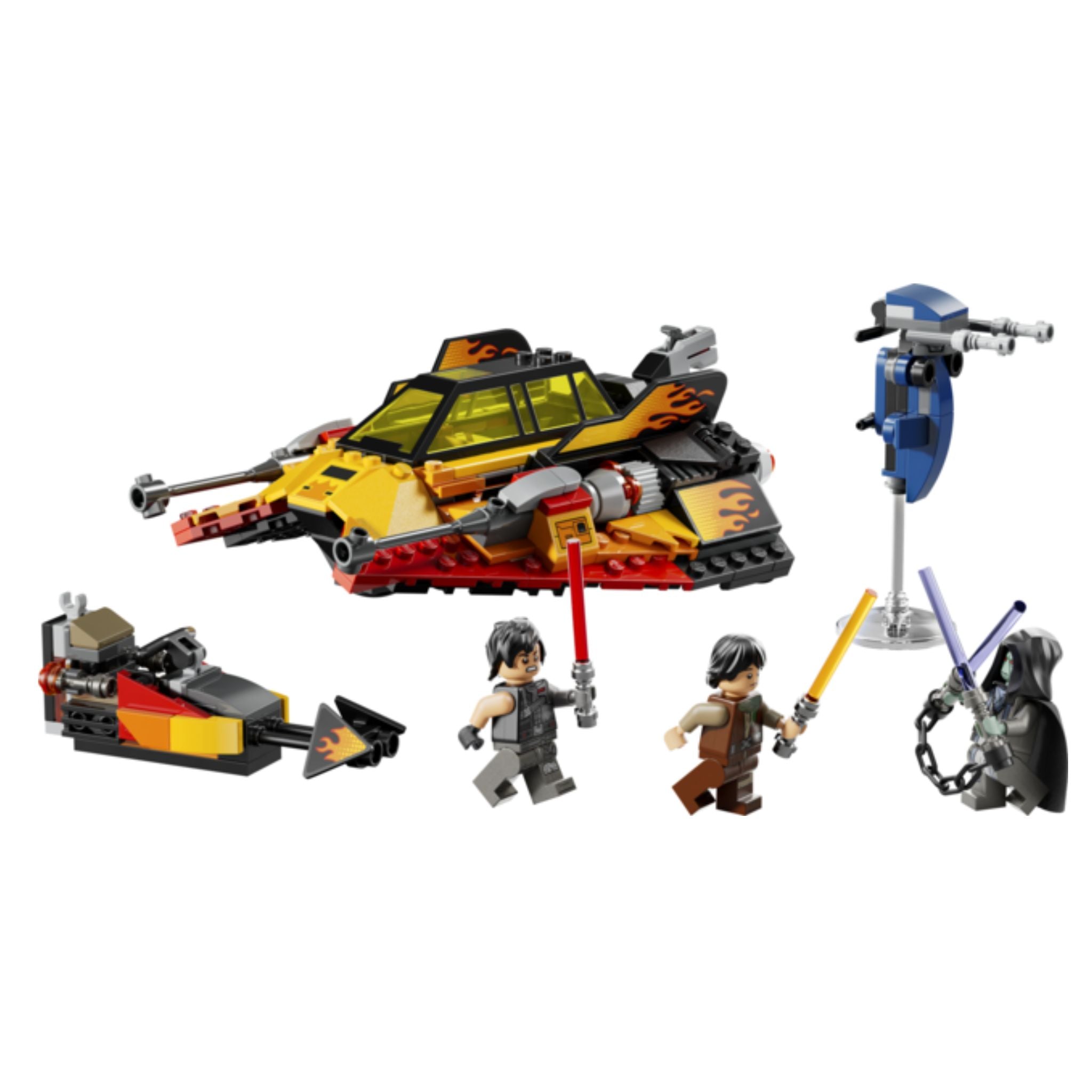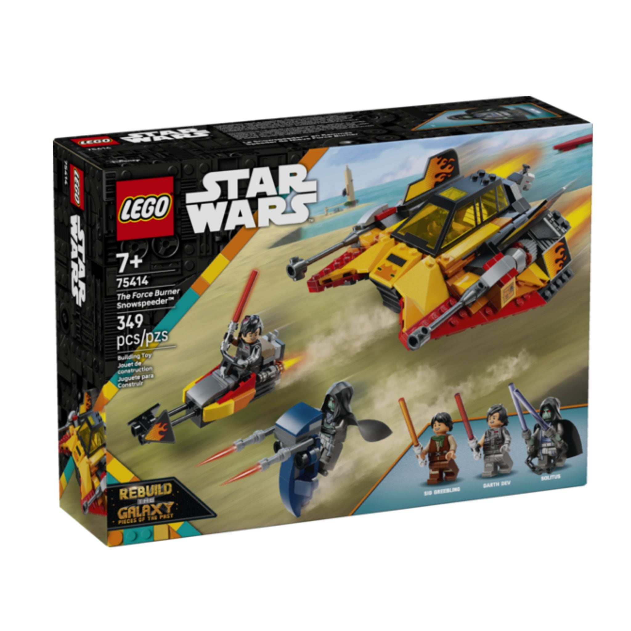 This buildable playset also includes the first-ever LEGO Star Wars minifigures of Sig Greebling, Darth Dev and Solitus. Each character is equipped with a Lightsaber™, including Solitus’s dual Lightsaber™ with a chain, plus Solitus also has a cool STAP for battle play. Set contains 349 pieces.
