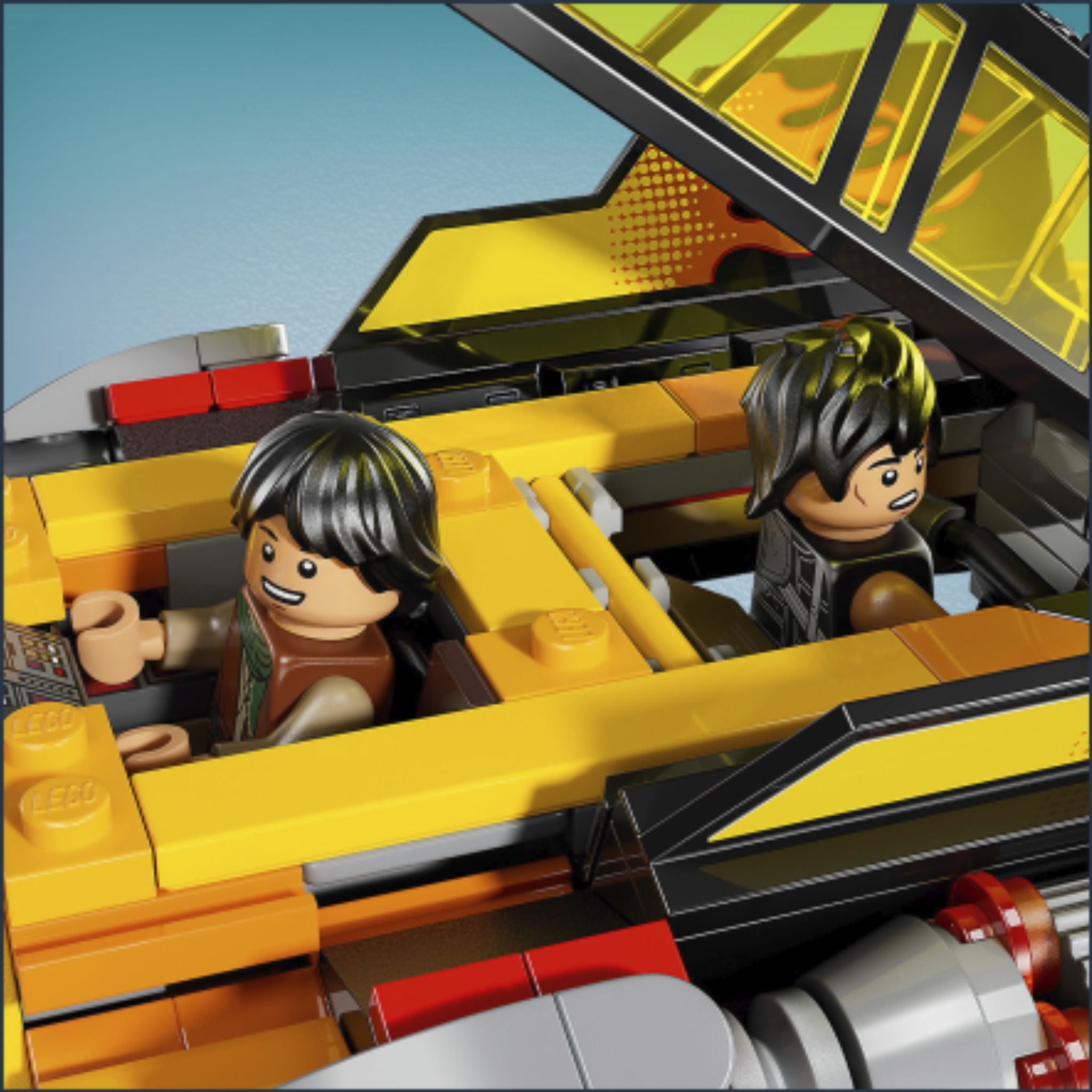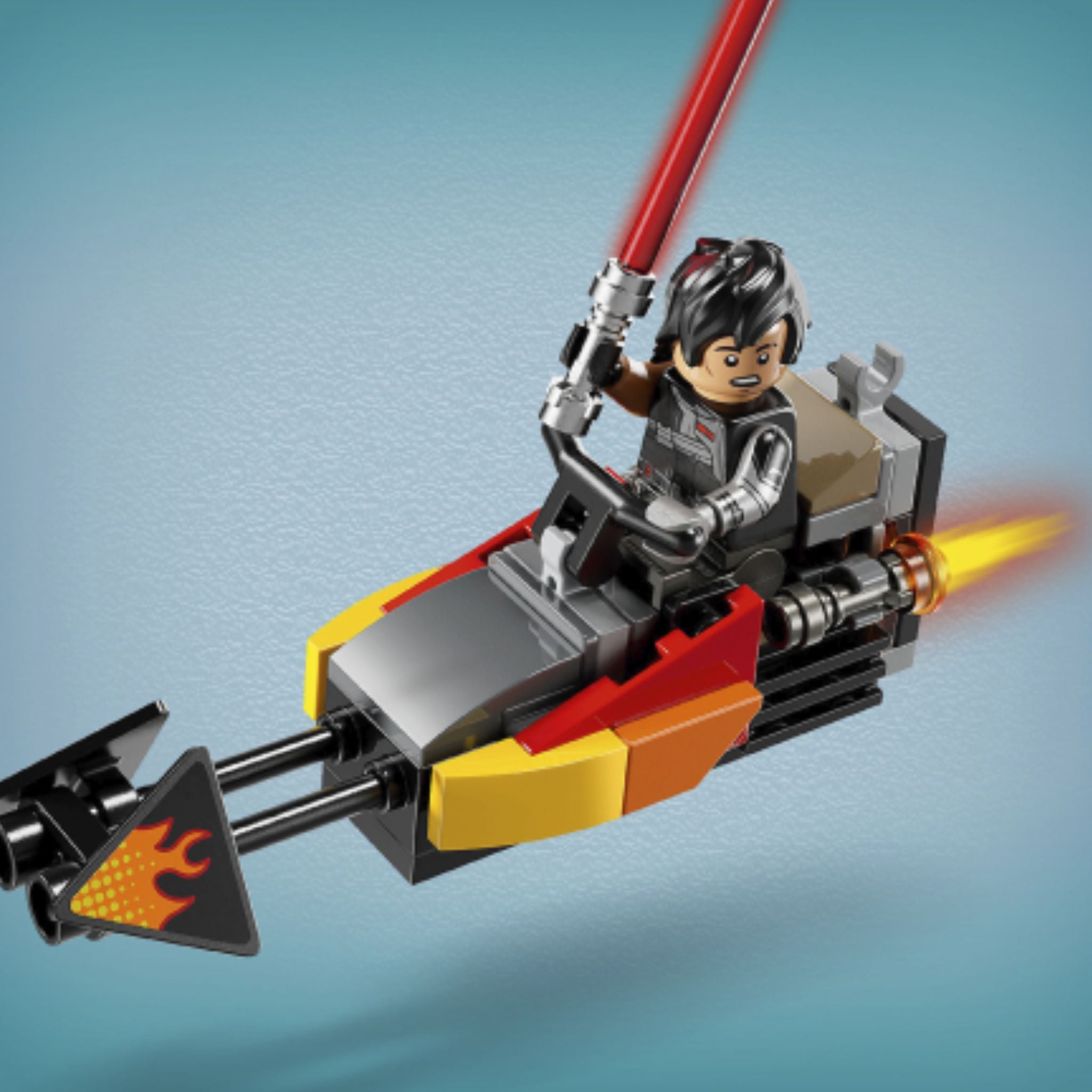 Gear up for fast action play with The Force Burner Snowspeeder (75414). A top Star Wars™ gift idea for boys, girls and any fans aged 7 and up, this collectible building toy for kids recreates authentic features of the unique snowspeeder vehicle seen in LEGO® Star Wars: Rebuild the Galaxy™ Season 2. It’s got eye-catching flame decals, an opening double cockpit with a hidden, detachable speeder bike, and a rear stud shooter. Press down on the seat in the back of the cockpit (or the head of the LEGO minifigure sitting in it) to release the speeder bike.