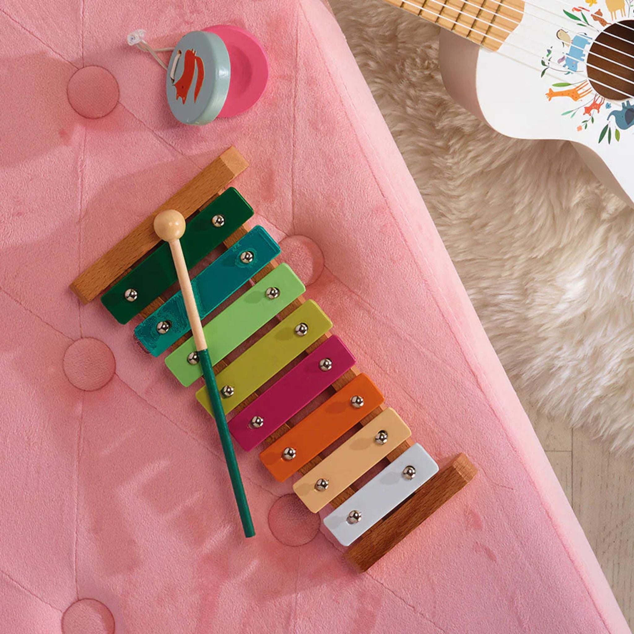 The set invites imitation play, letting kids feel like grown-ups making real music together. A wonderful tool for rhythm development and multi-sensory learning that grows with your child's curiosity and musical interest.