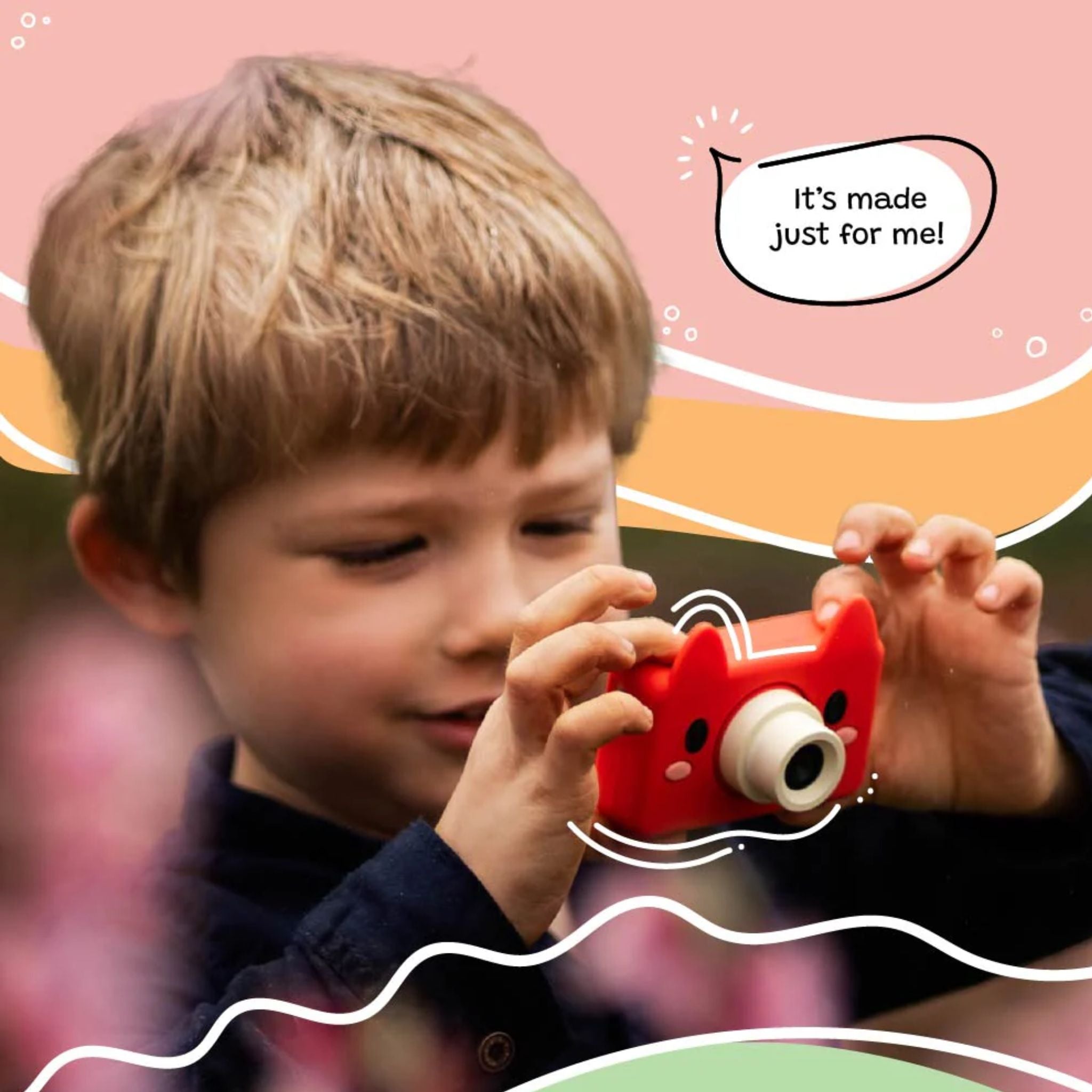 Kiiimento's Model C camera offers everything a budding photograph could dream of for in a first camera! Its compact design fits comfortably in small hands, while the soft, lightweight silicone case absorbs rough play and other impacts.