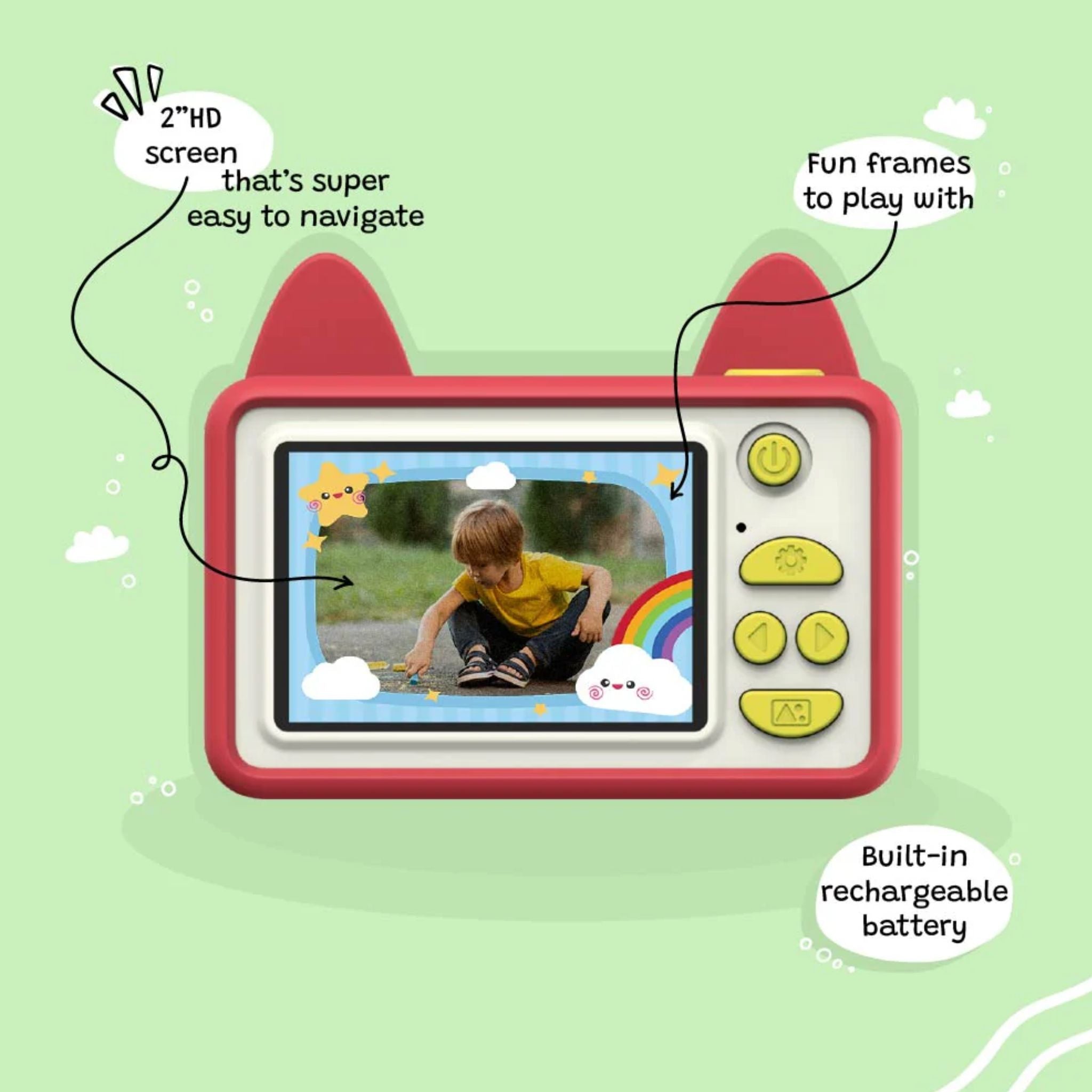 Kid-friendly design - With its bright colours and large, easy-to-use buttons, this digital camera is ideal for introducing children to photography while having fun.
