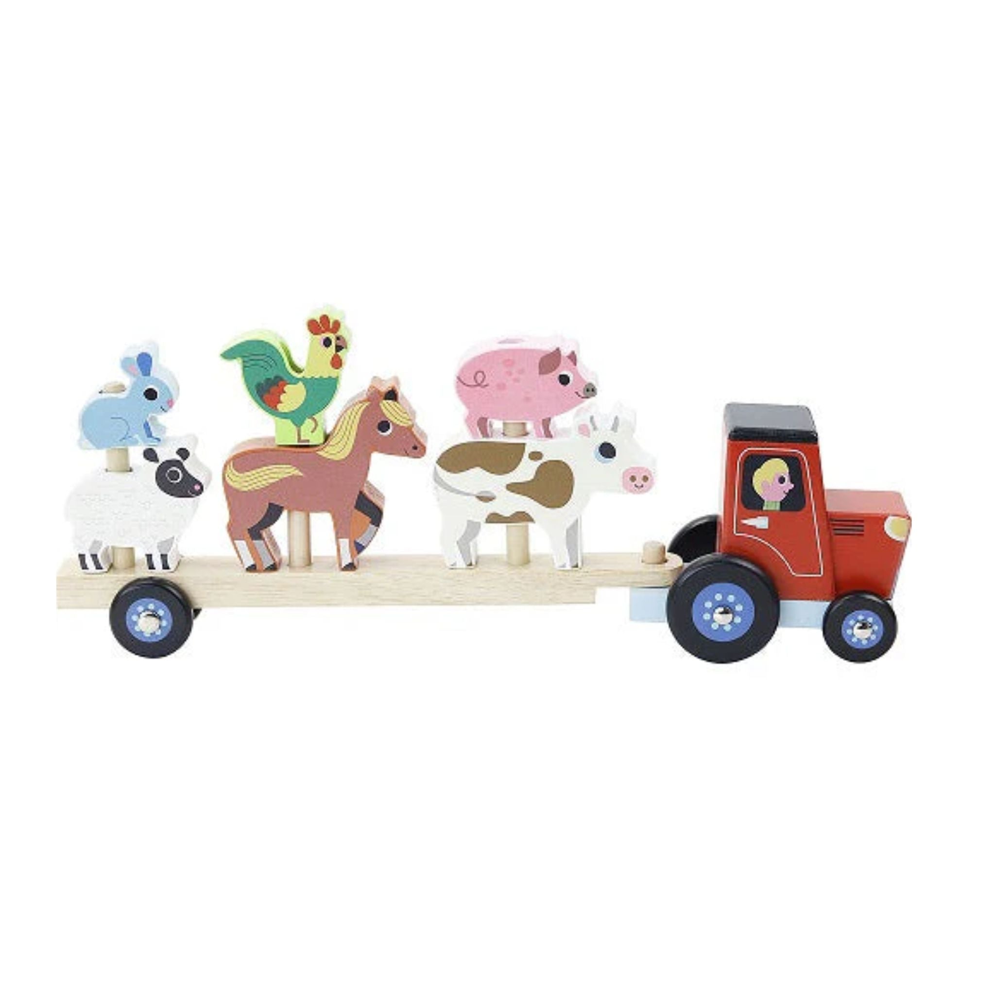 Each wooden farm character is thoughtfully sized for toddlers to grasp while offering different shapes that encourage problem-solving as they find the perfect stacking order. This versatile toy grows with your child - first as a shape sorter for the youngest players, then as a vehicle and animal set for imaginative farm adventures as they develop.