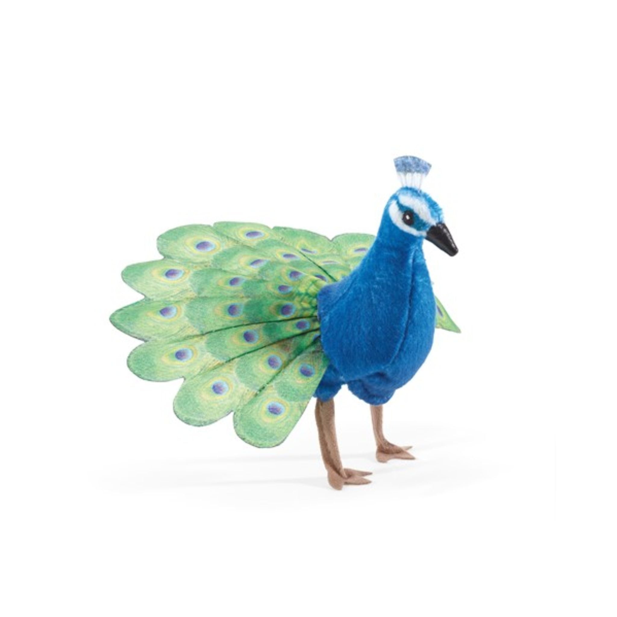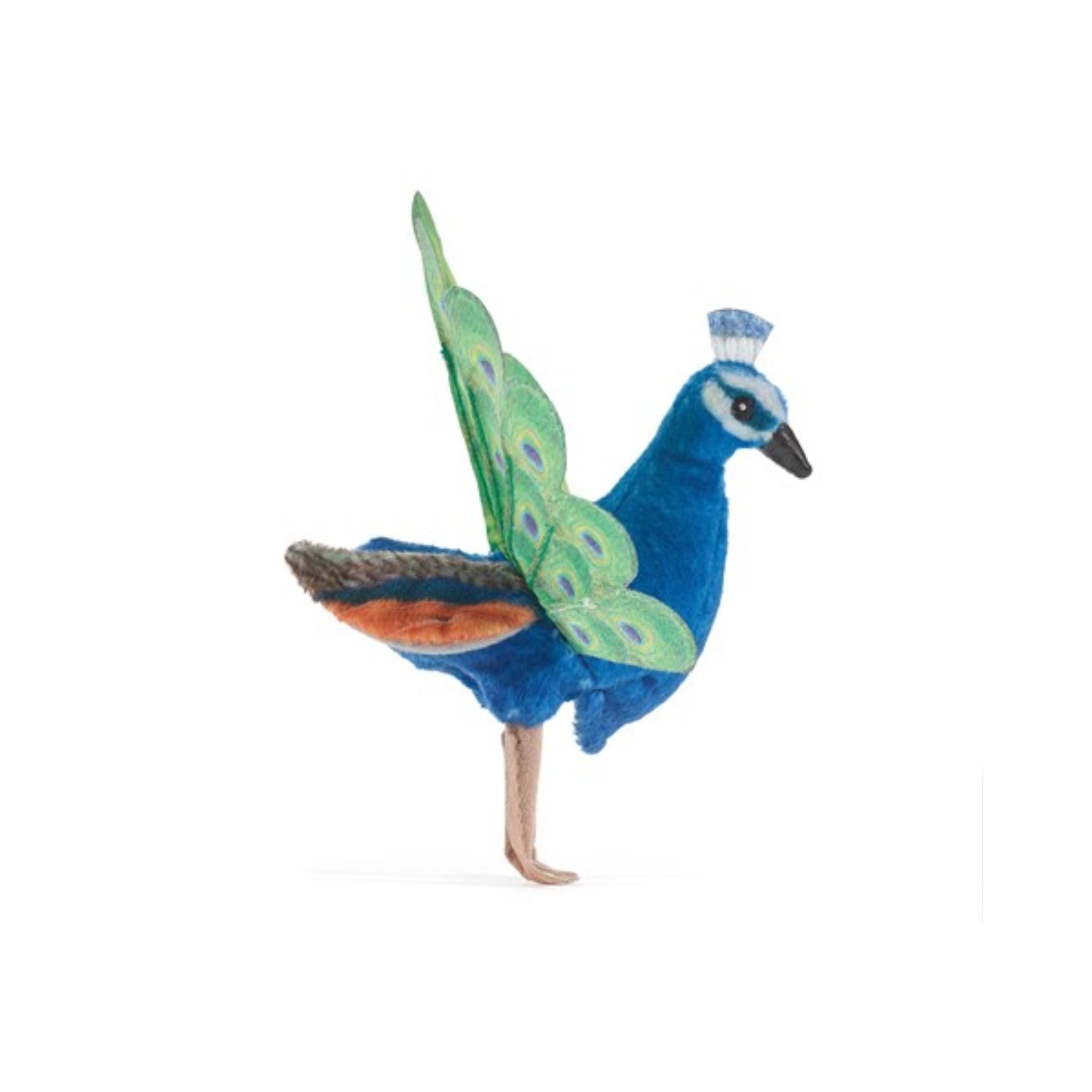 The Mini Peacock finger puppet is a beautiful bird in the hand that proudly displays its colourful fan with a gentle flick of the tail.