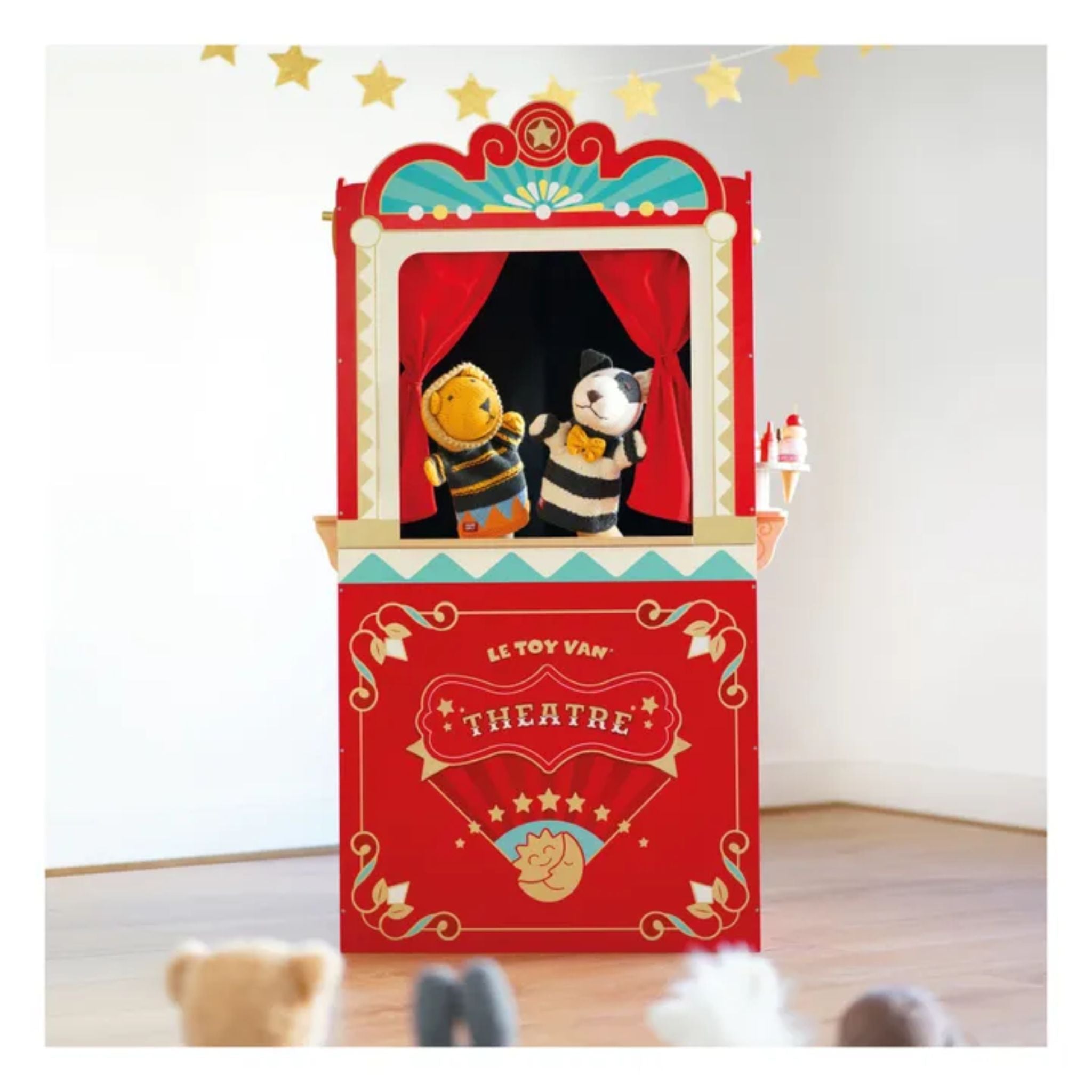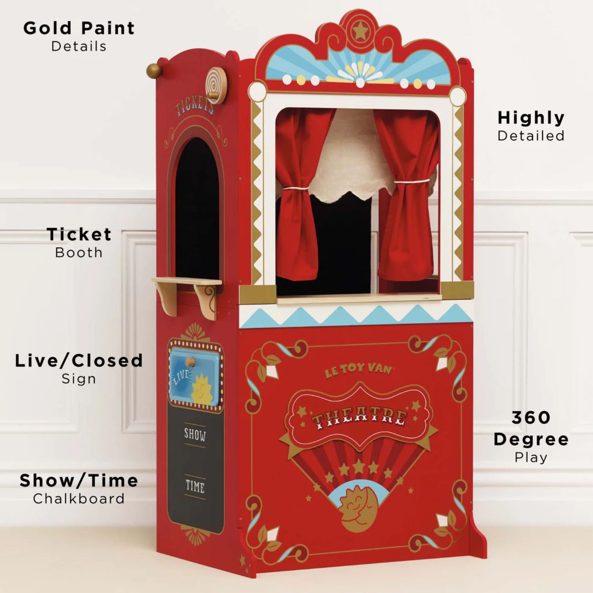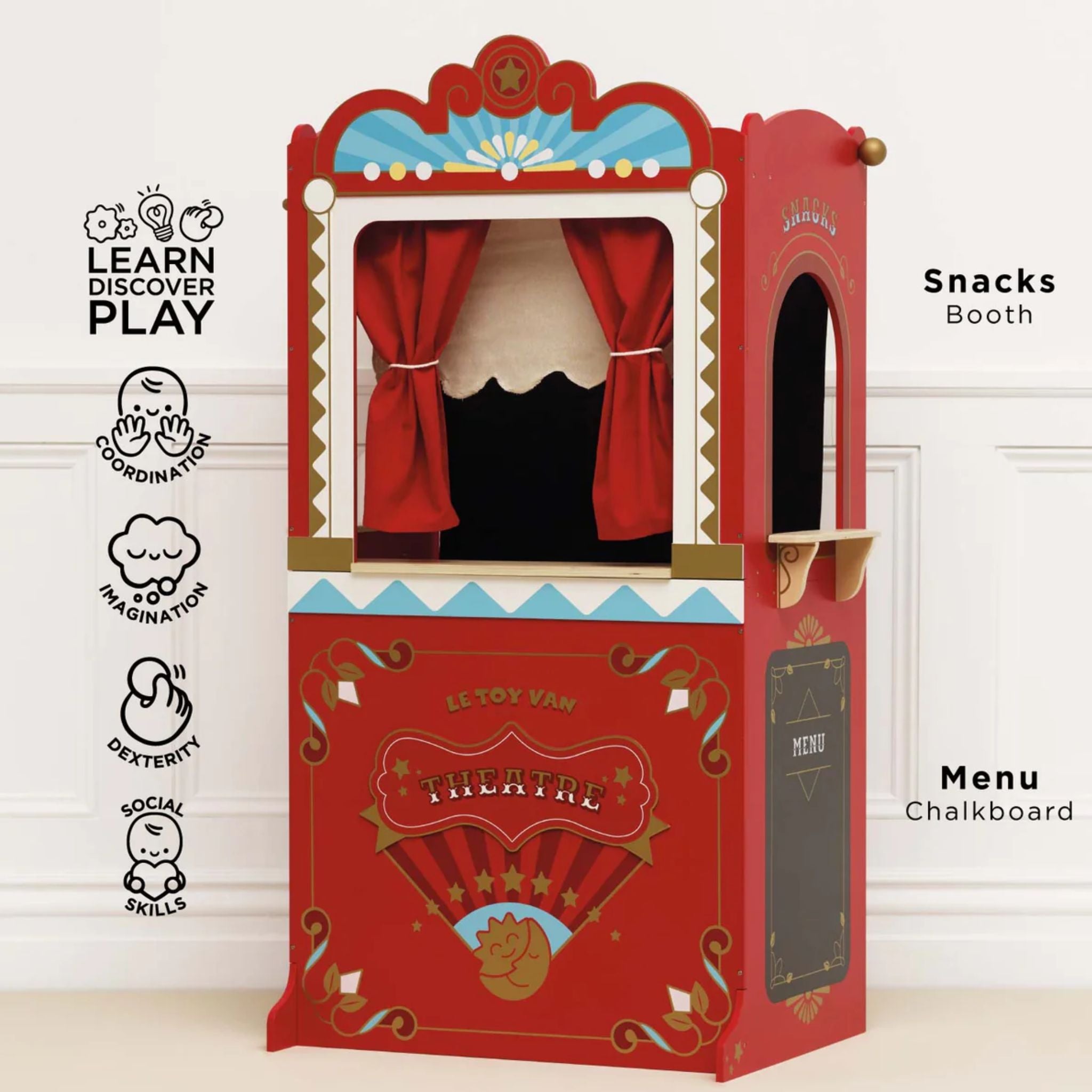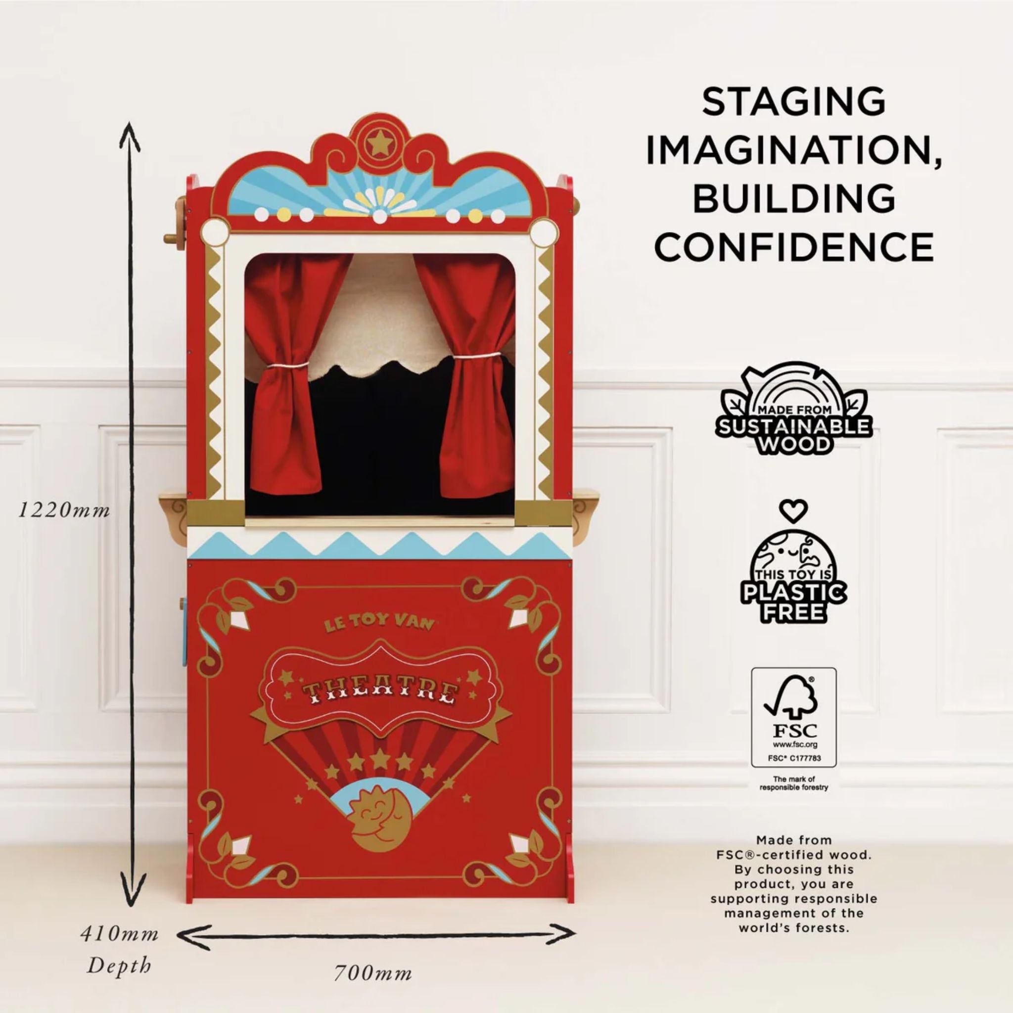 The stage is set for role play fun! This beautiful retro styled, wooden puppet theatre is a real showstopper. With it's unique nostalgic design and brightly painted exterior, crafted from durable, sustainable wood.