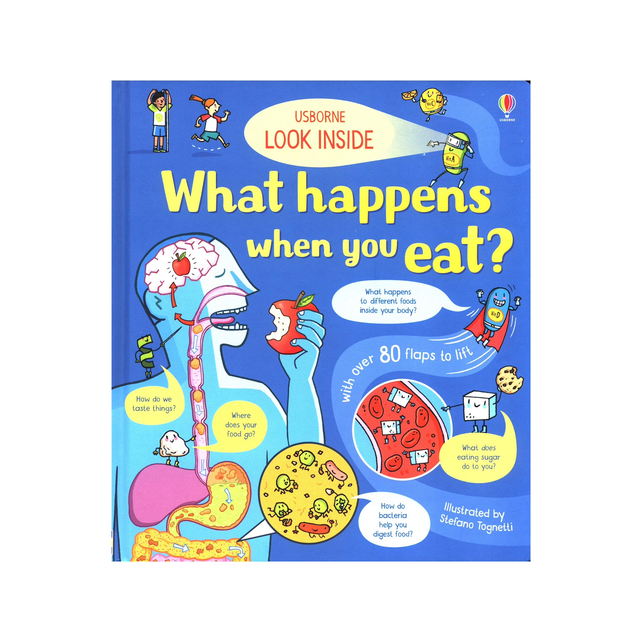 Ever wondered what your body does to all the different kinds of food you eat? Lift the flaps to find out how your body deals with fat, sugar, carbohydrates, protein and vitamins, and what the different nutrients do for you. Also find out about tiny bacteria living in your gut, why some people are allergic to foods, and what we should be eating. Follow food as it goes from your mouth to out the other end, and discover what happens to nutrients in the food we eat and why we need them. Covers the hot topics of sugar and gut bacteria, made accessible for young children. Includes useful information about different types of food, so children know more about what they eat and how to have a balanced diet.