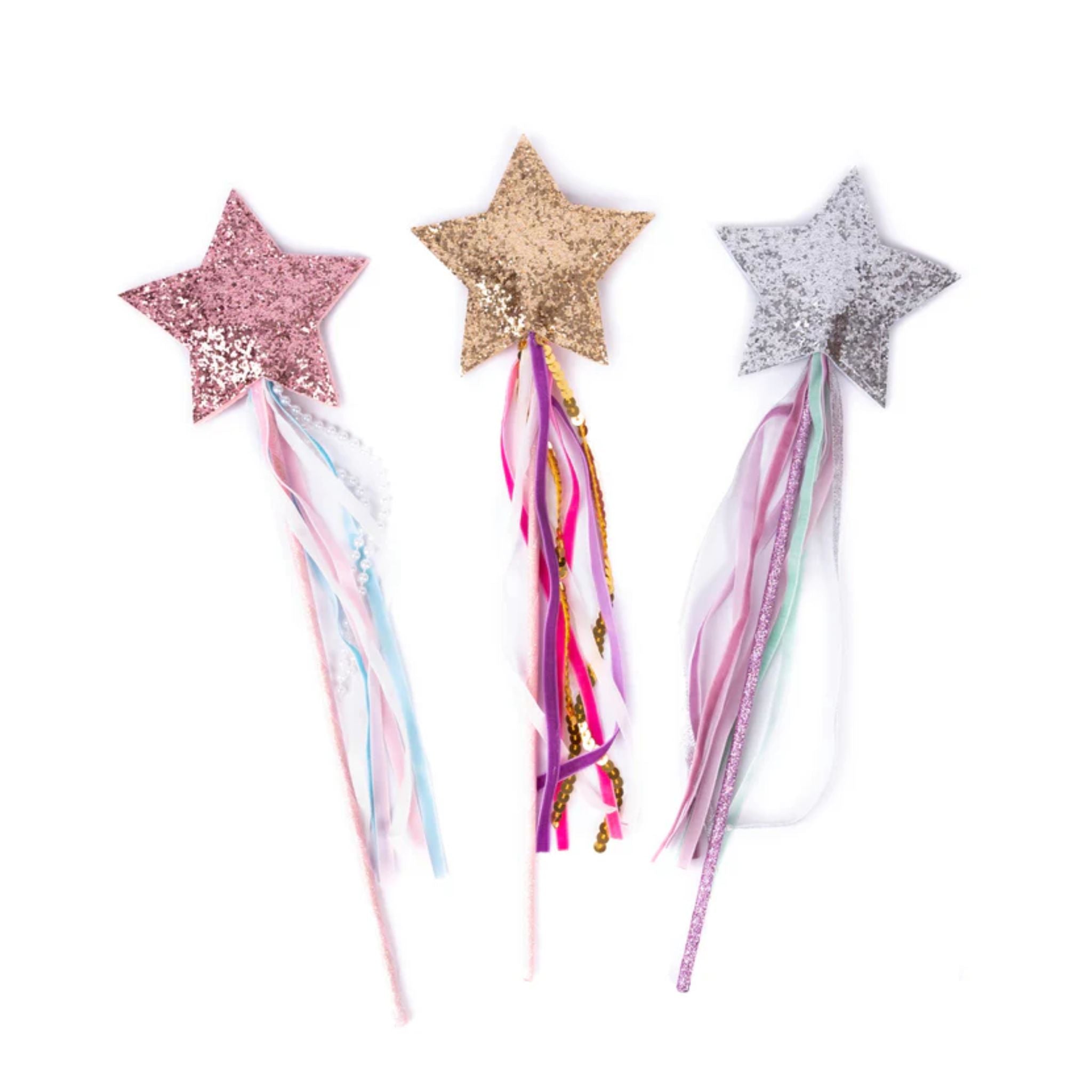 Elevate imaginative play with the Deluxe Twinkle Twinkle Star Wand, available in elegant pink, gold, and silver hues. Adorned with shimmering ribbons and delicate sparkles, this wand adds a touch of magic and sophistication to any dress-up or celebration. Perfect for inspiring creativity and graceful charm in every little star.