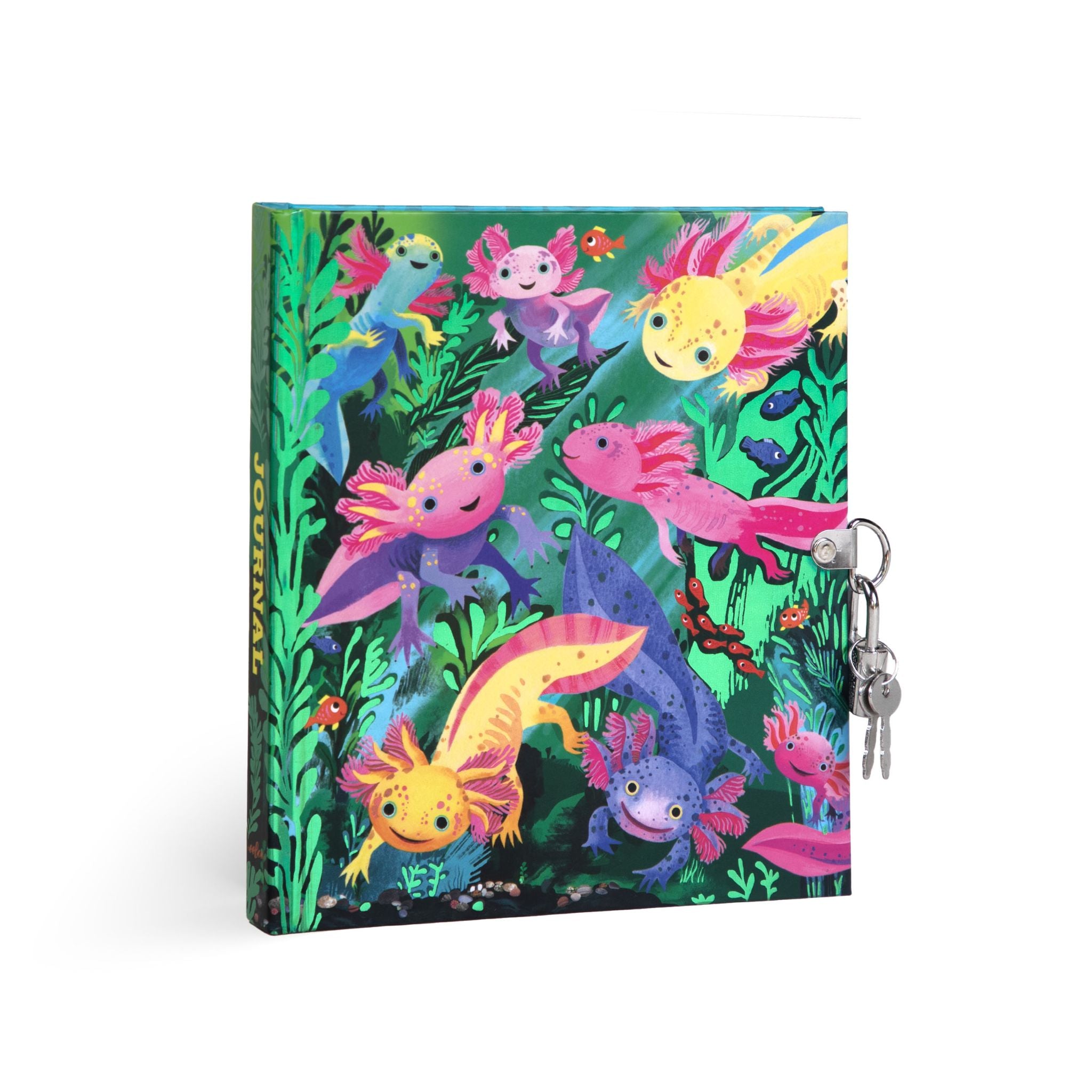 A foil stamped journal to record your private thoughts and adventures. The cover features adorable axolotls. Cultivate creativity, literacy and self-expression. Comes with a metal lock and two keys.Size: 176 lined and colour pages, 6.25 X 5.5"