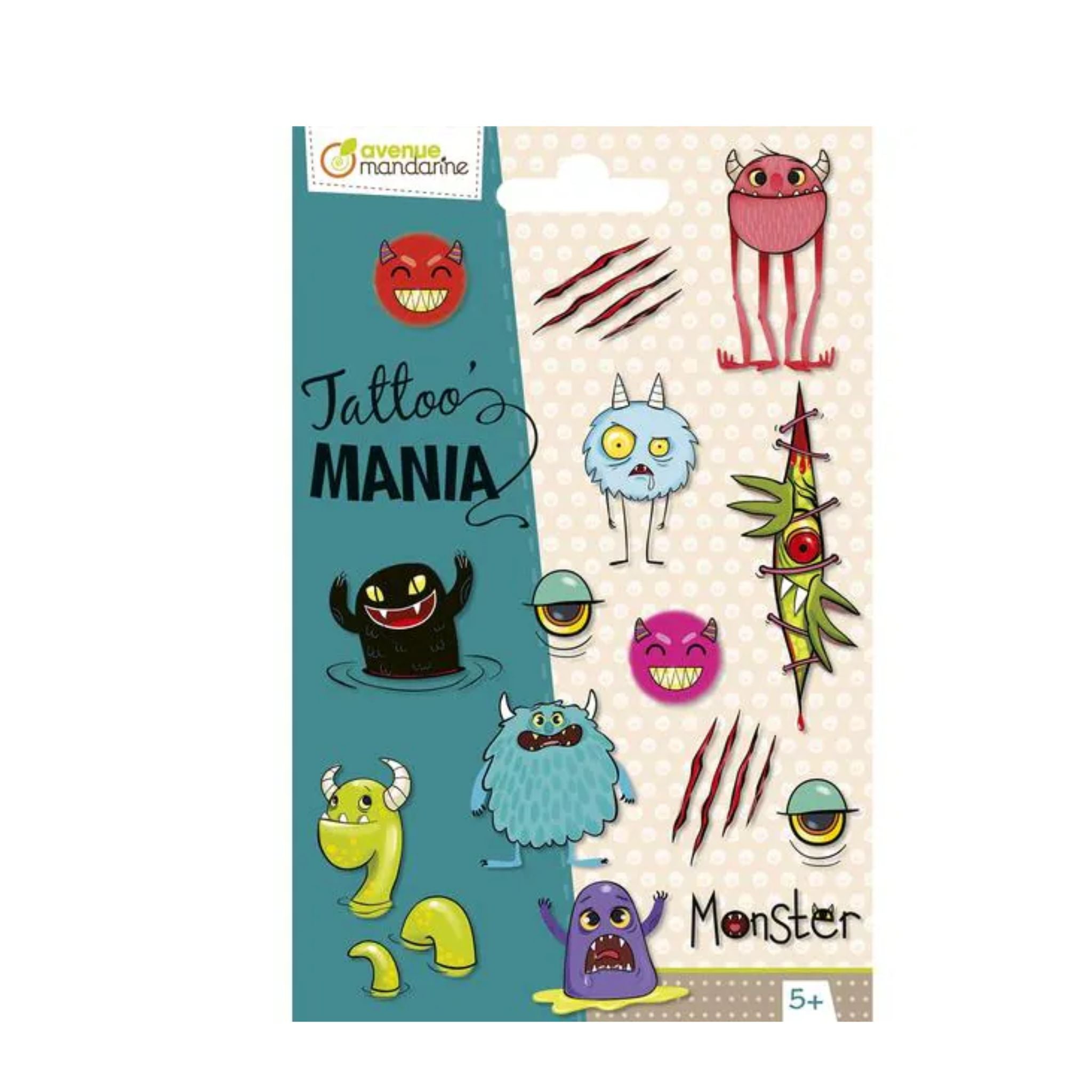 15 water-erasable temporary monster themed tattoos. Simply cut out the design of your choosing, remove the protective sheet and apply the design to your child's skin. Then rub for 30 seconds and gently remove the translucent foil. Dermatologically tested.