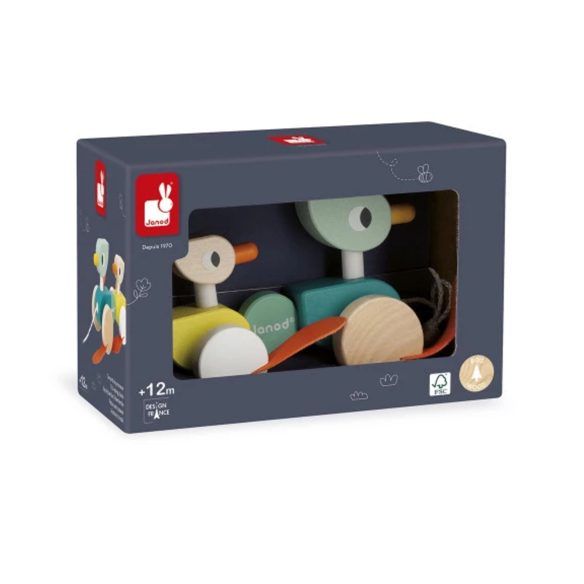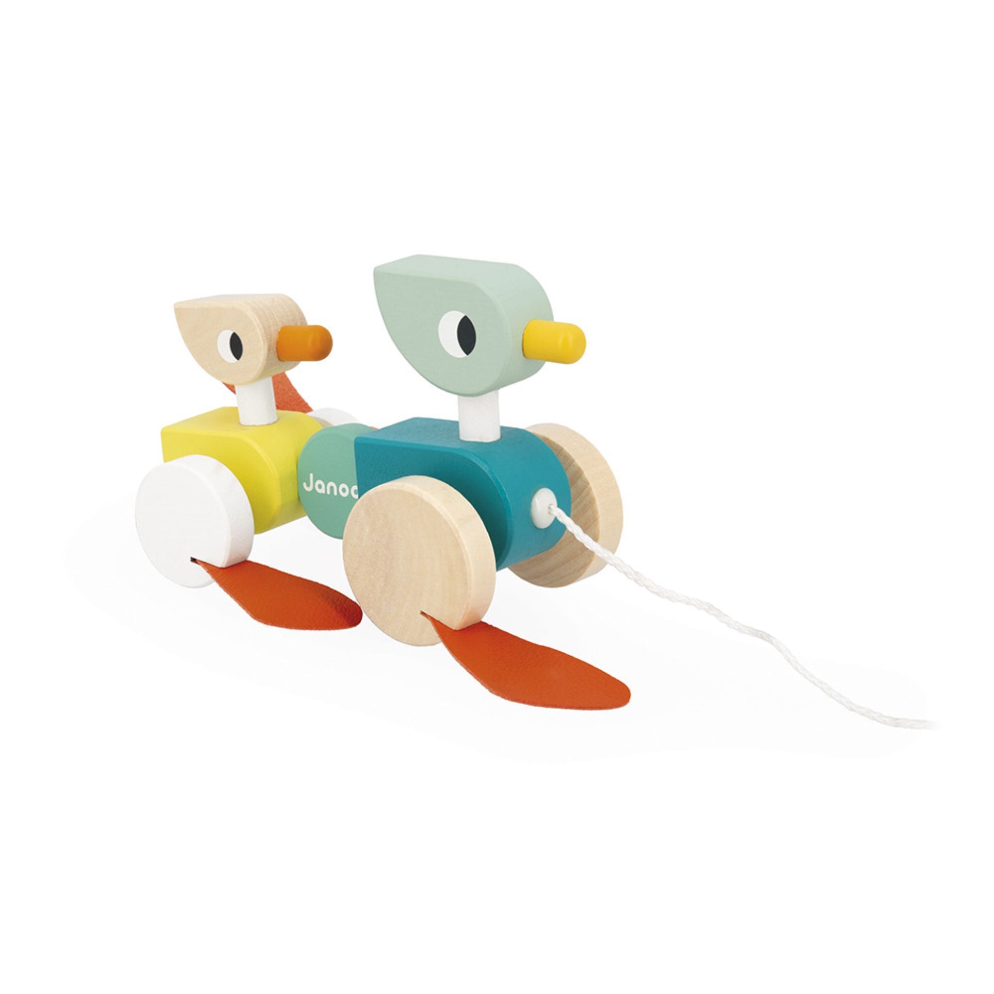 Say hello to your child's new best friends—the Janod Zigolos Pull-Along Ducks! This adorable wooden duck family waddles into playtime ready for endless adventures, whether at home or on the move. As little ones pull their companions along, they're naturally building motor skills and coordination without even realizing they're learning. With a charming cherry wood body and smooth-rolling beech wheels, these ducks are as delightful to watch as they are to play with. Pure joy in toy form.