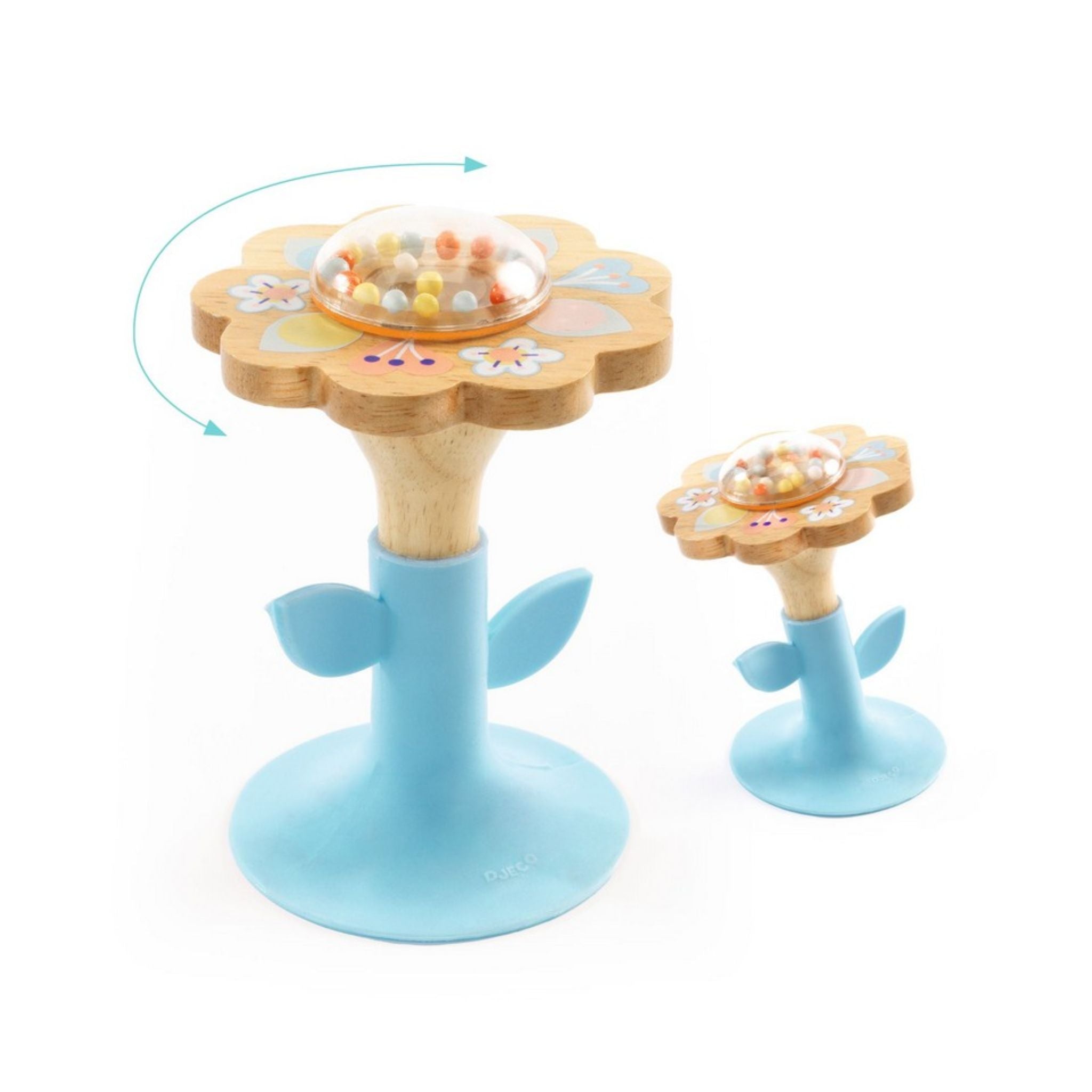 The beads inside the flower create a delightful sound as your baby spins it around, stimulating their hearing and sense of touch. The silicone base offers flexibility and stability, allowing your baby to tap and play with the rattle without it toppling over.