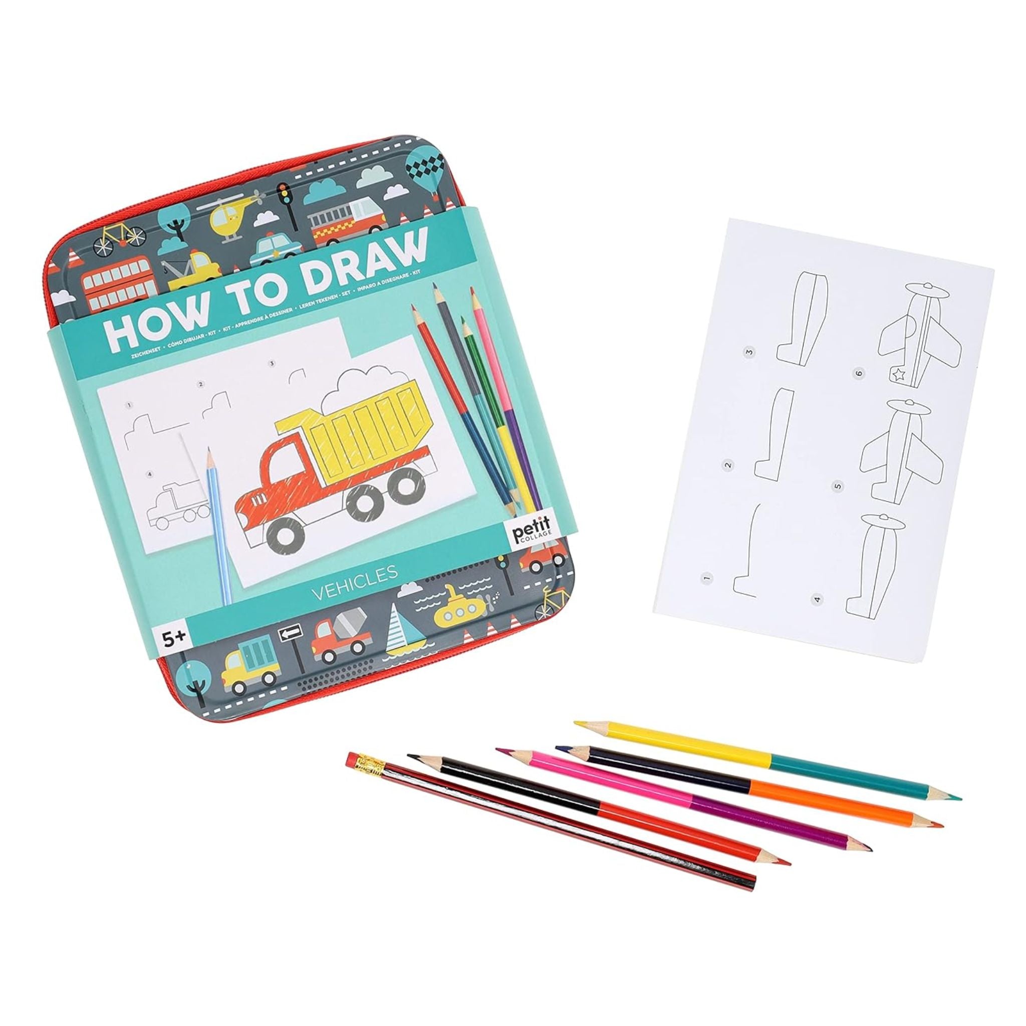 How To Draw Vehicles is a step-by-step guide to drawing different modes of transport of all shapes and sizes. Little artists will learn to draw 36 different vehicles: from bicycles to blimps to boats. The portable tin makes it easy to take with you on trips for fun and creativity on the go.