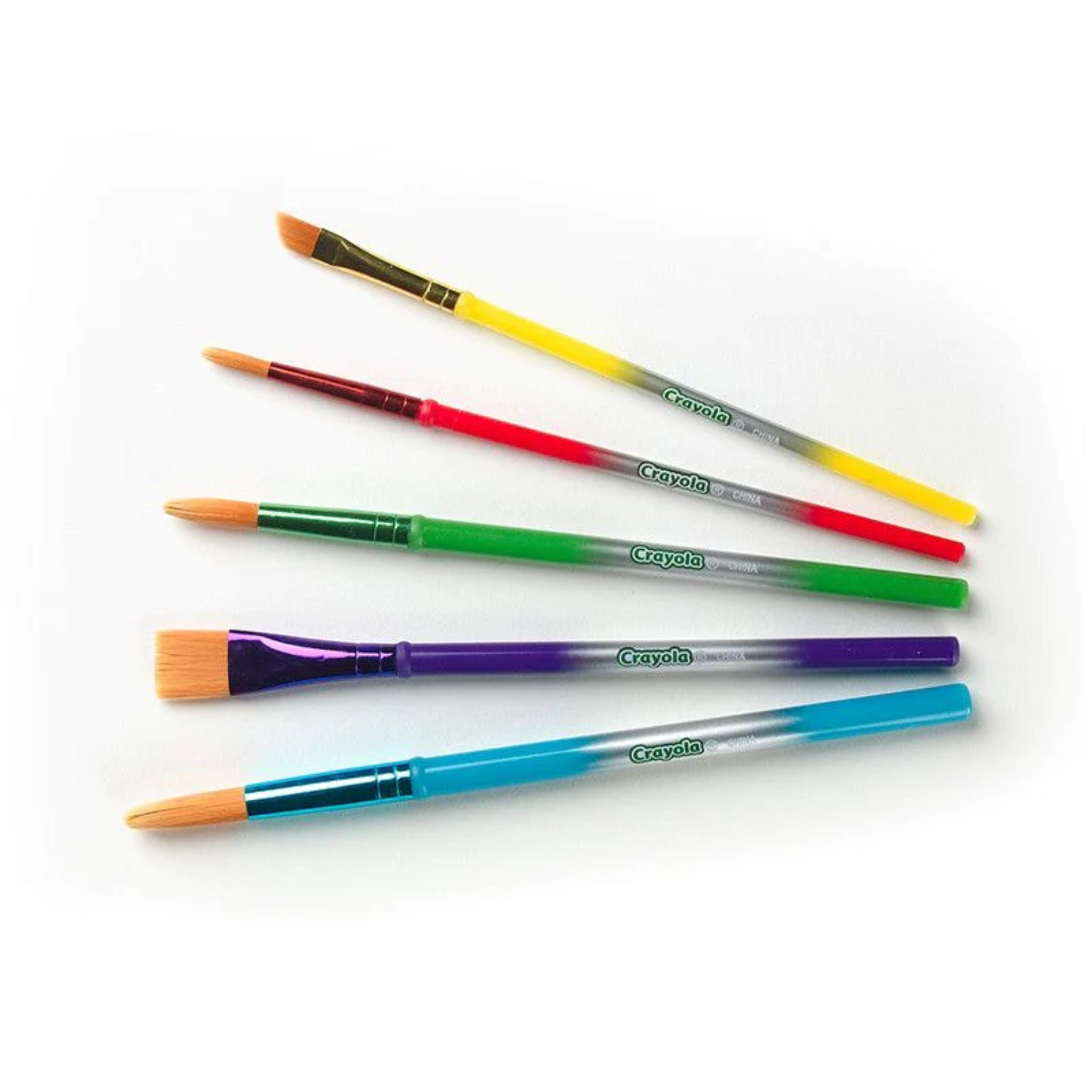 Encourage kids to get creative with this all-purpose set of premium paint brushes from Crayola. Ideal for nearly any craft or school project, the multiple brush sizes are perfect for broad coverage or fine details. The small handles are a good fit for kid-size hands and each handle has its own vibrant colour for added fun. Featuring soft, Taklon bristles to show paint’s true colour, these brushes are perfect to use with Crayola’s washable paint, tempera paint, and acrylic paint.