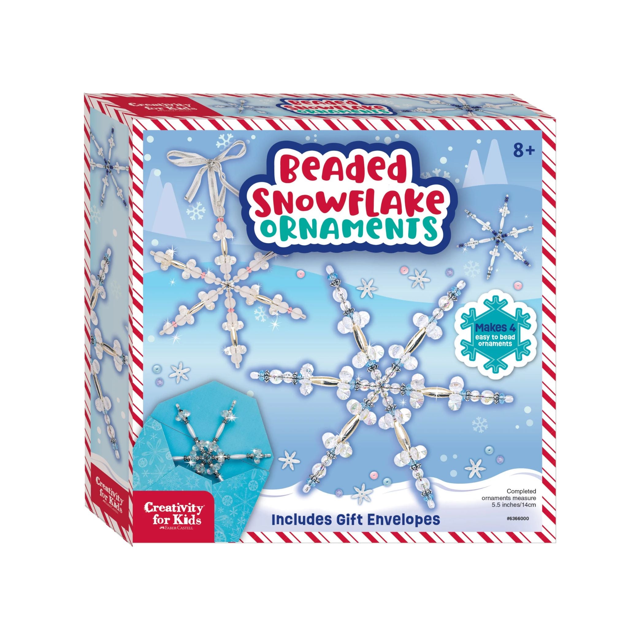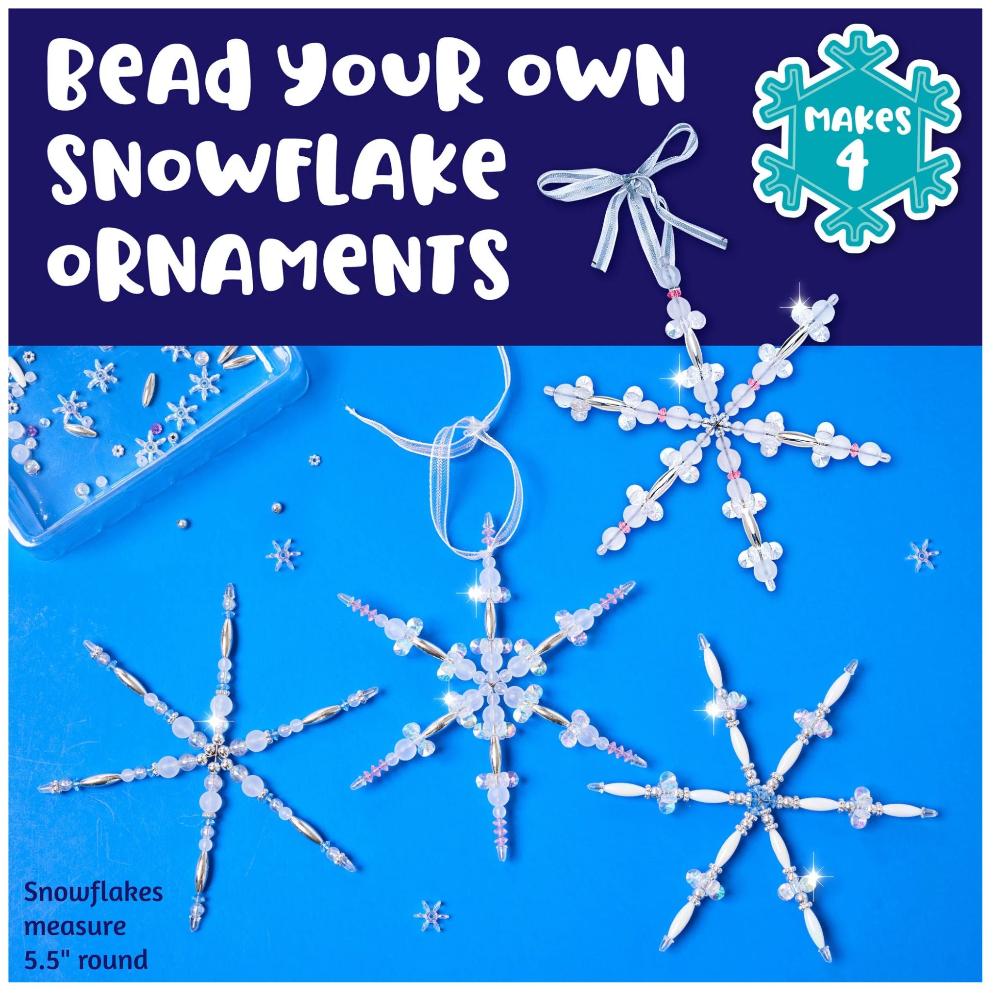 Contents Include: 4 wire snowflake forms, 4 printed gift envelopes, 4 envelope seals, bead assortment with endcaps, craft glue 0.2 fl. oz. (6ml), hanging ribbons, bead tray, instructions