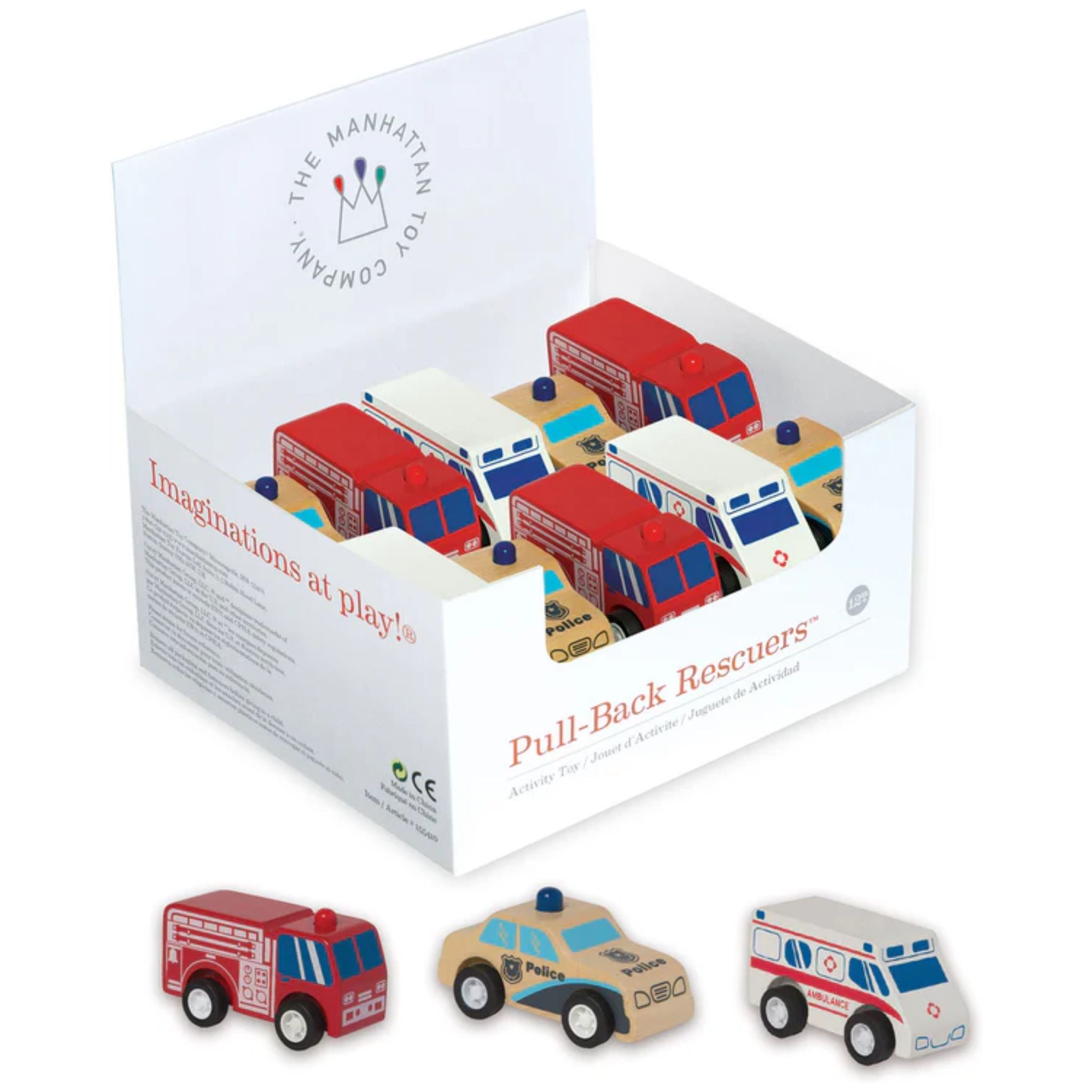 Manhattan Pull Back Rescue Vehicles - Firetruck is backordered and will ship as soon as it is back in stock.