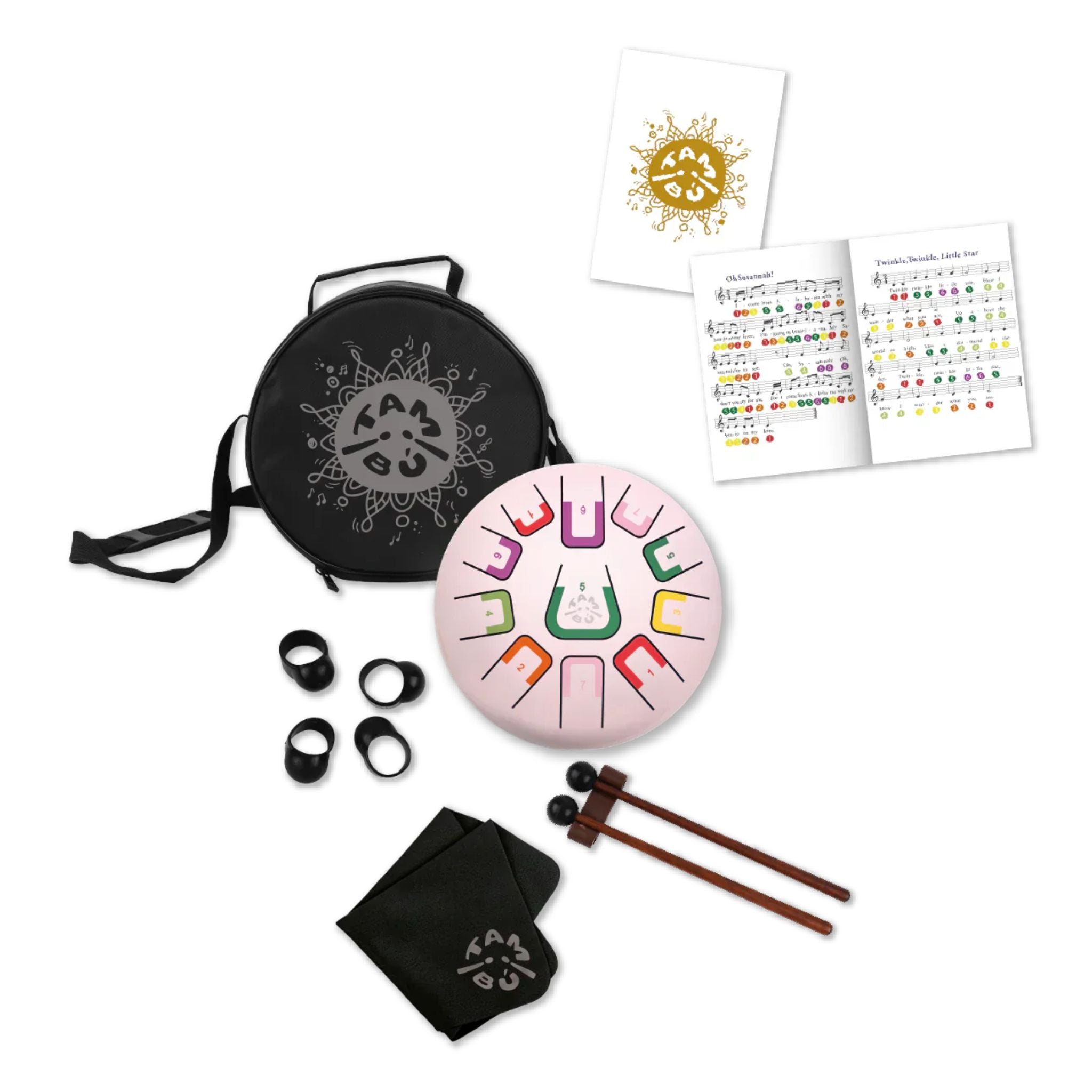 Tambú is an innovative tongue drum designed for all ages. It allows you to create harmonious melodies from the very first moment, with no prior musical knowledge required. Its color and number coding system makes learning intuitive and fun.  Tambú is perfect for any home, school or workplace. Invites everyone to explore sound, feel rhythm and create music on a journey full of harmony and creativity.