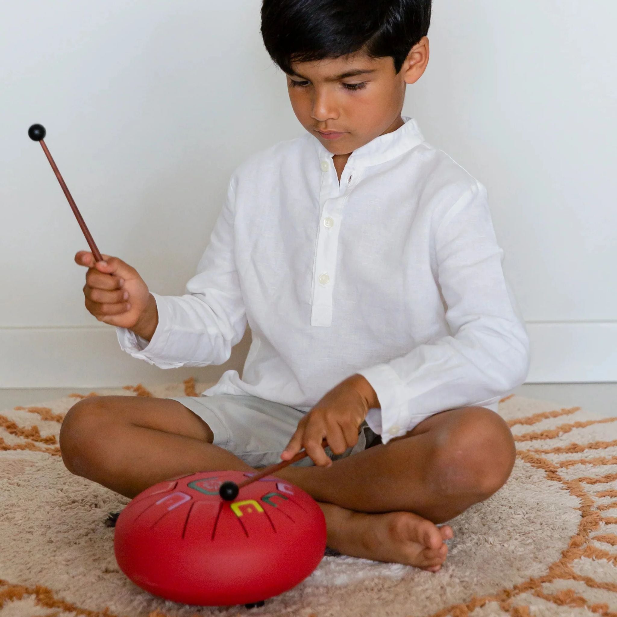 Tambú is an innovative tongue drum designed for all ages. It allows you to create harmonious melodies from the very first moment, with no prior musical knowledge required. Its color and number coding system makes learning intuitive and fun.  Tambú is perfect for any home, school or workplace. Invites everyone to explore sound, feel rhythm and create music on a journey full of harmony and creativity.